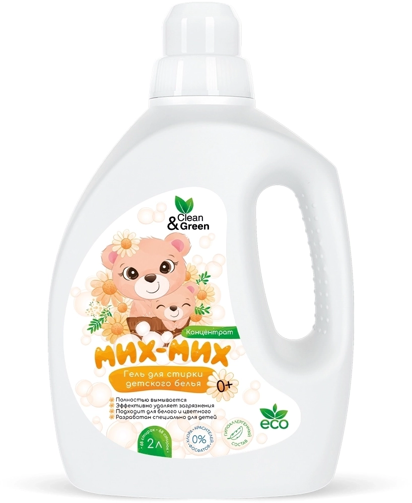 Гель концентрат для стирки детского белья Мих-Мих (гипоаллергенный) 2 л. (ПЭНД) Clean&Green CG8427