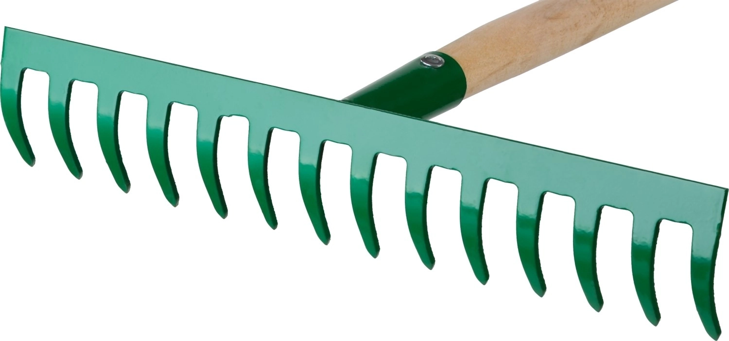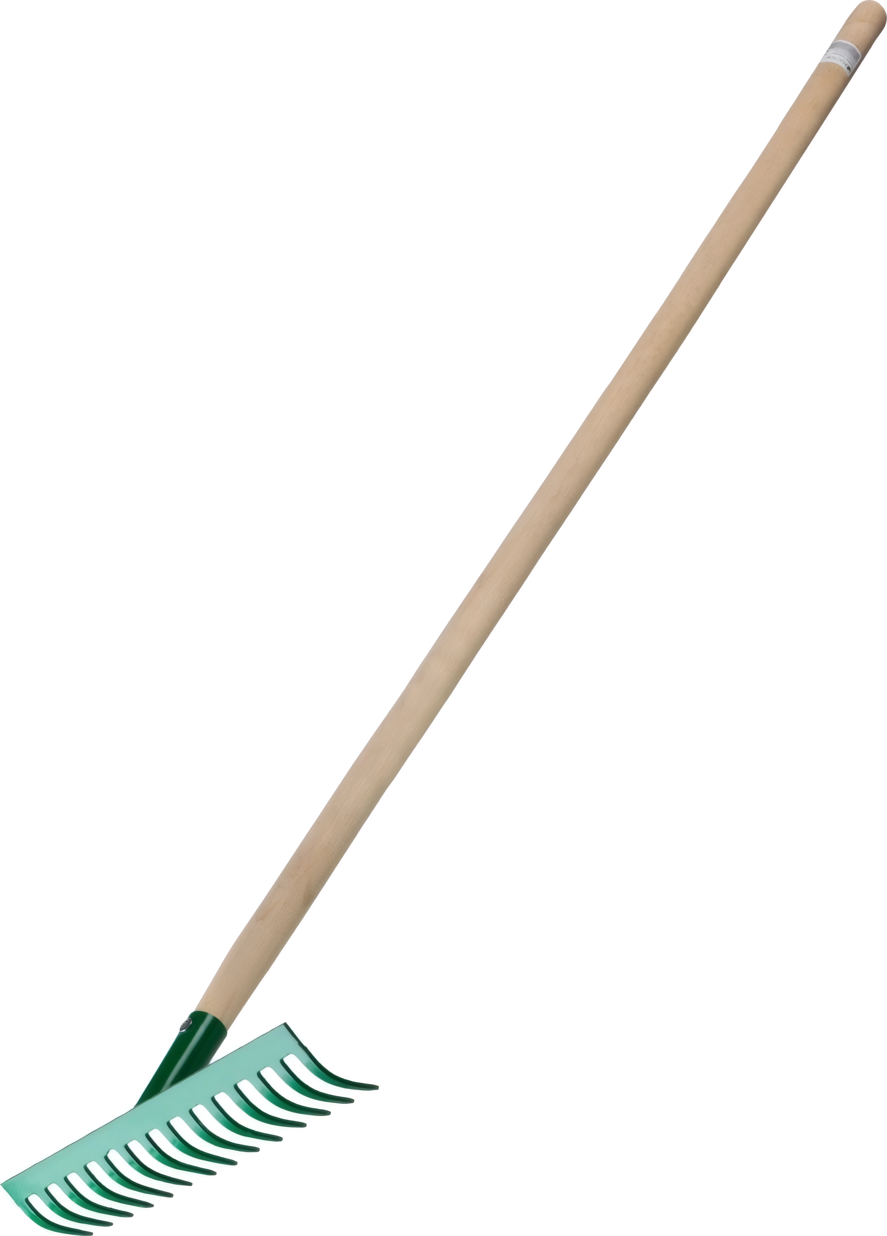 Грабли РОСТОК 355 x 80 x 1500 мм, 14 прямых зубьев, рабочая поверхность из стали, покрытие краска, черенок деревянный высш. сорт