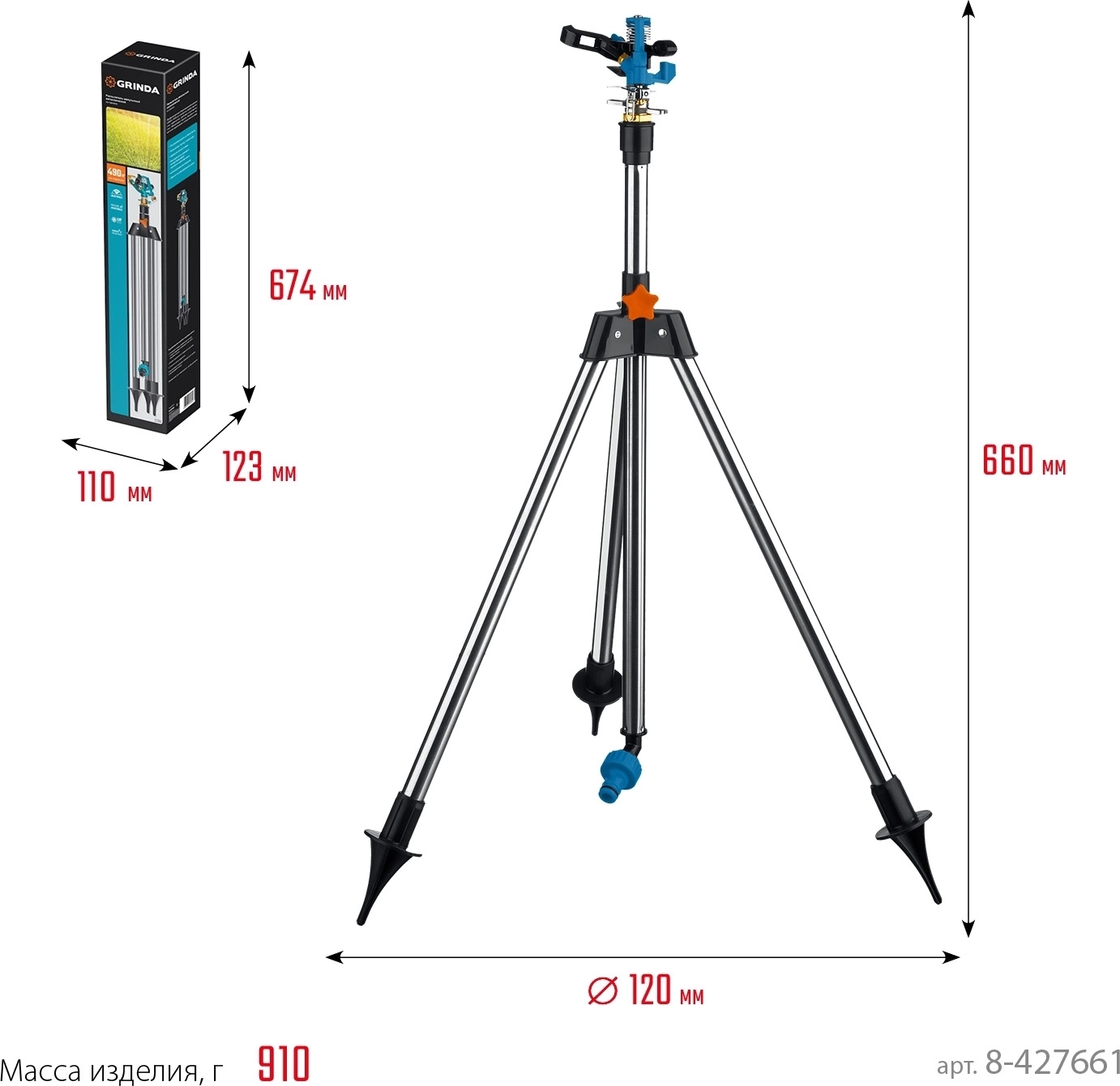 Максимальная площадь полива, м²: 490
