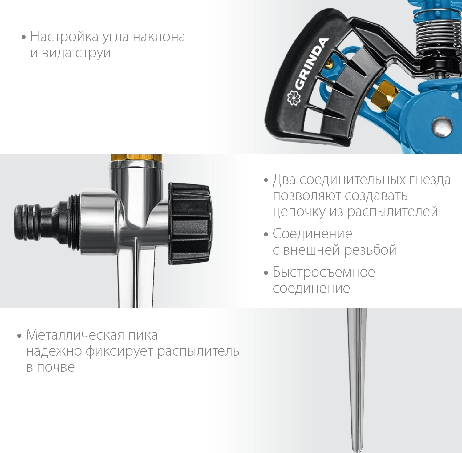 Профессиональные стационарные распылители GRINDA PROLine отличаются особой прочностью, надёжностью, удобством и долговечностью. Обеспечивают простое, быстрое и герметичное подключение к поливочной системе. Широкий ассортимент позволит подобрать модель идеально подходящую именно для ваших задач.