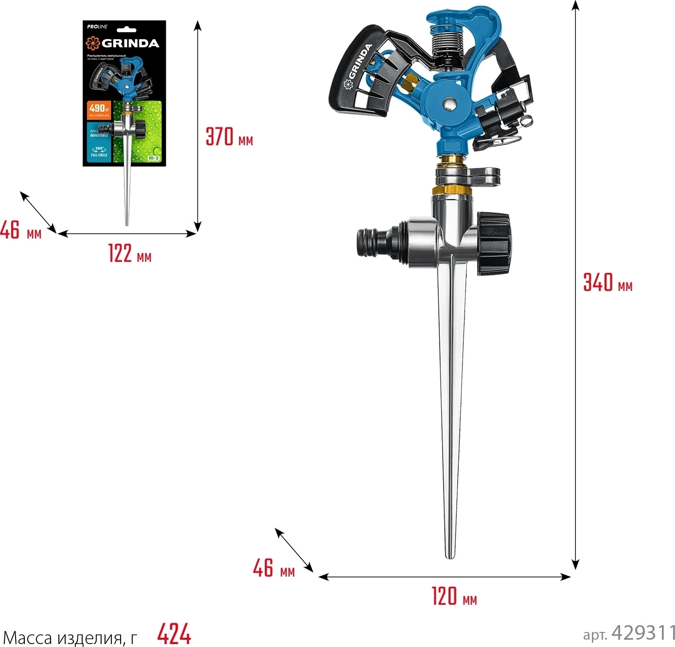 Максимальная площадь полива, м²: 490