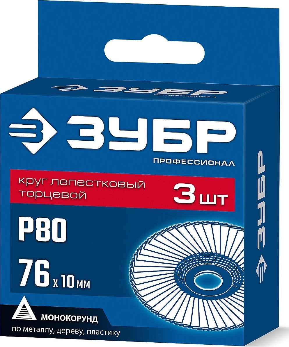 КЛТ для мини-УШМ ЗУБР 76 х 10 мм, P80, 3 шт.,