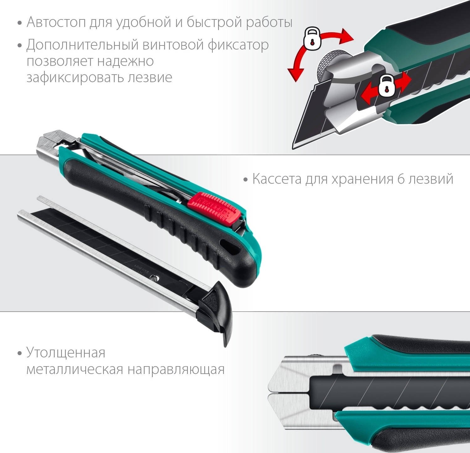 - Дополнительный винтовой фиксатор позволяет надежно зафиксировать лезвие