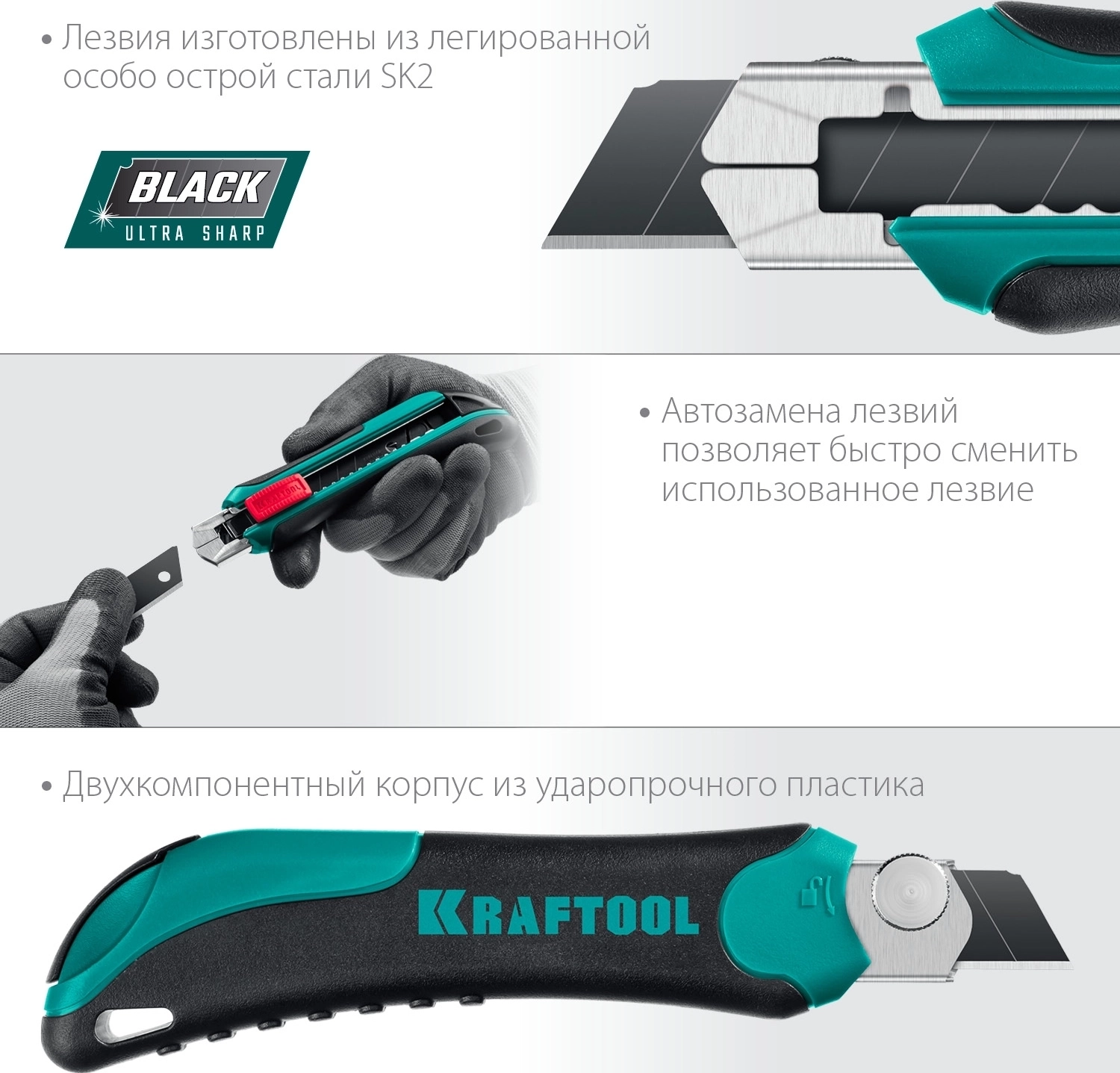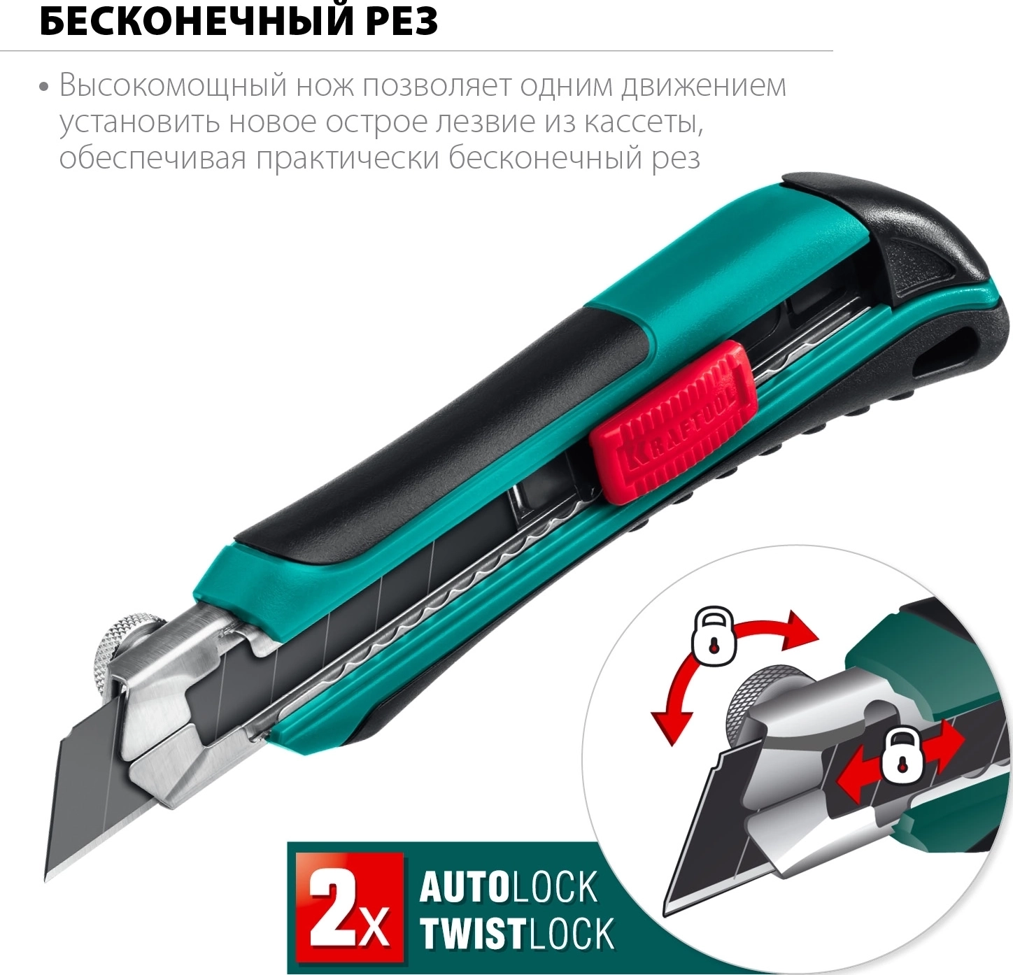 Мощный нож KRAFTOOL с автозаменой лезвий