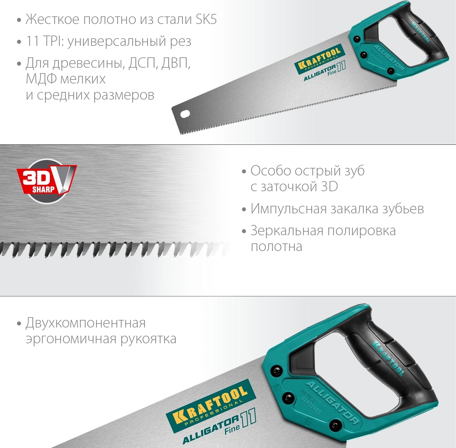Ножовка для точного реза KRAFTOOL Alligator Fine 11, 400 мм