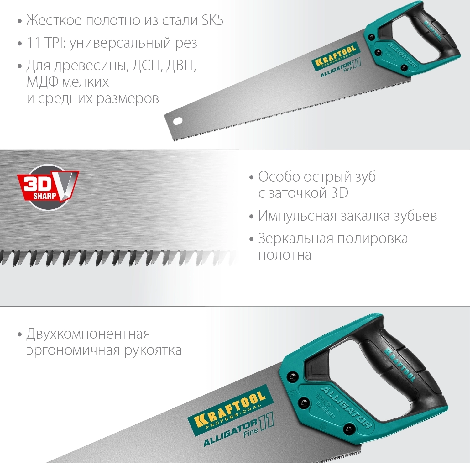 Ножовка для точного реза KRAFTOOL Alligator Fine 11, 450 мм