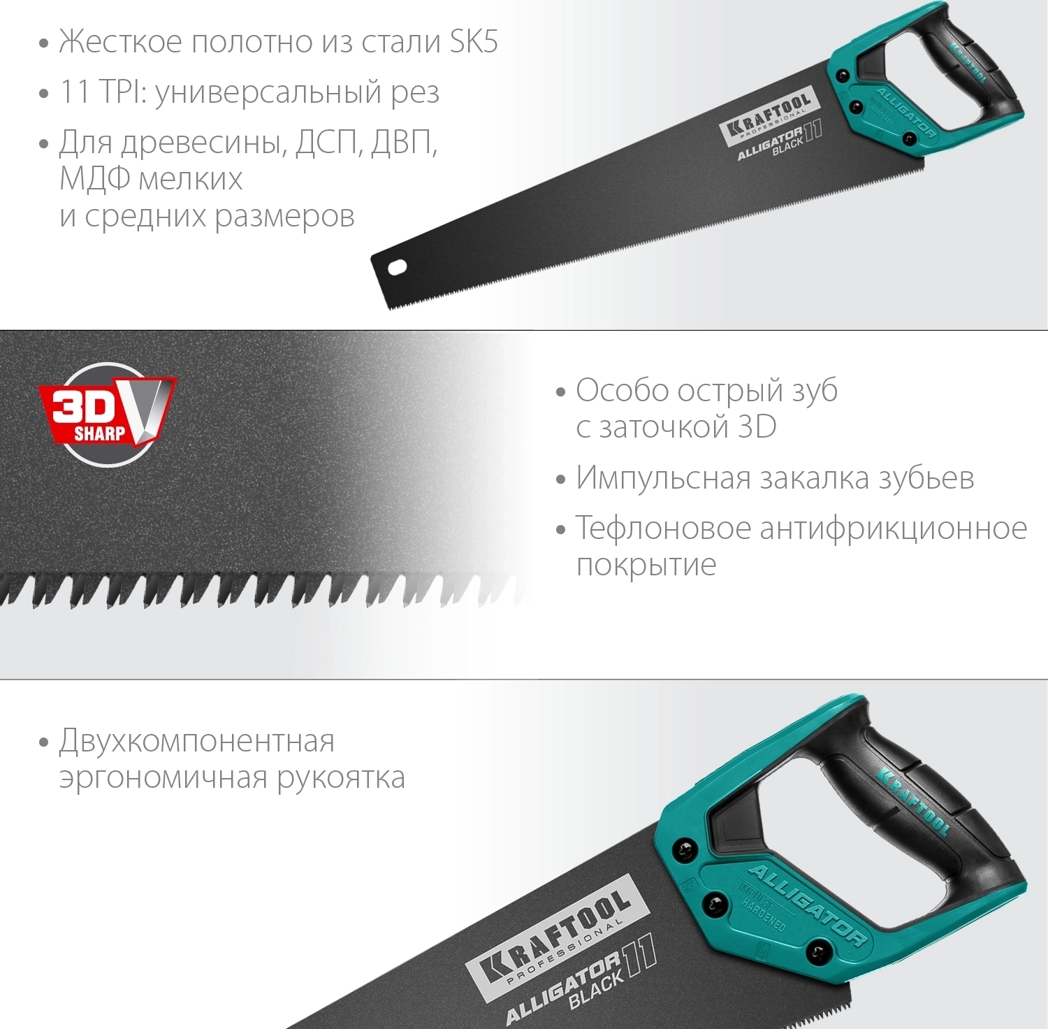 Ножовка для точного реза KRAFTOOL Alligator Black 11, 500 мм