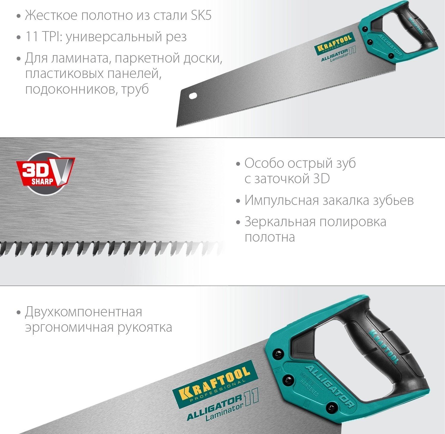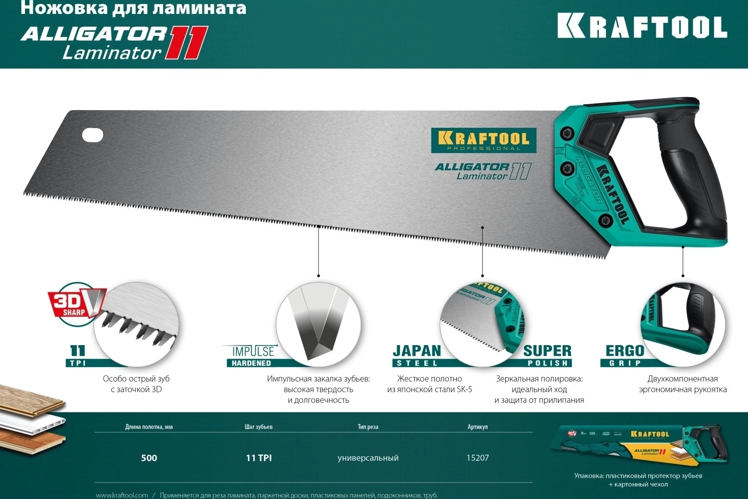 Ножовка по ламинату KRAFTOOL Alligator Laminator 11, 500 мм