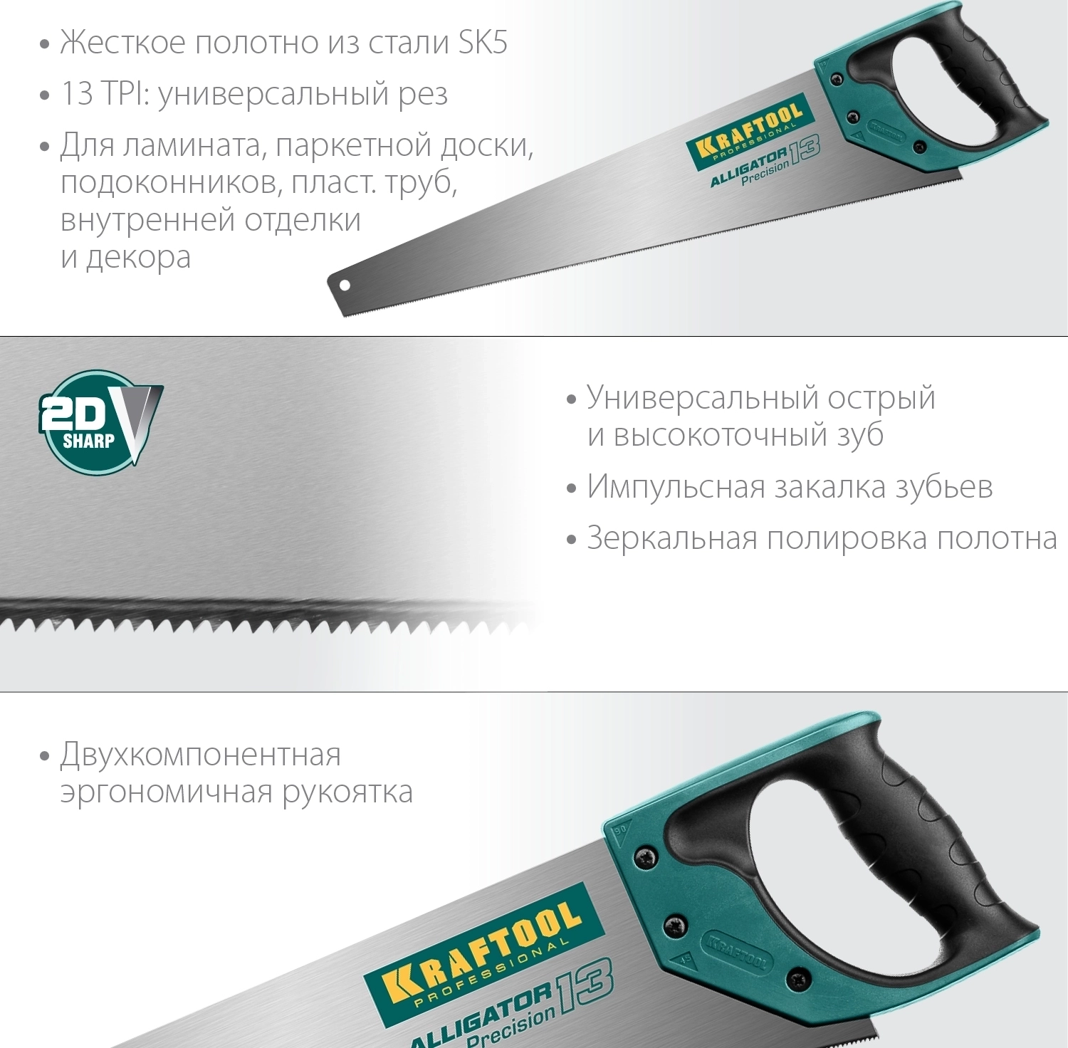 Ножовка для точного реза KRAFTOOL Alligator Precision 13, 500 мм