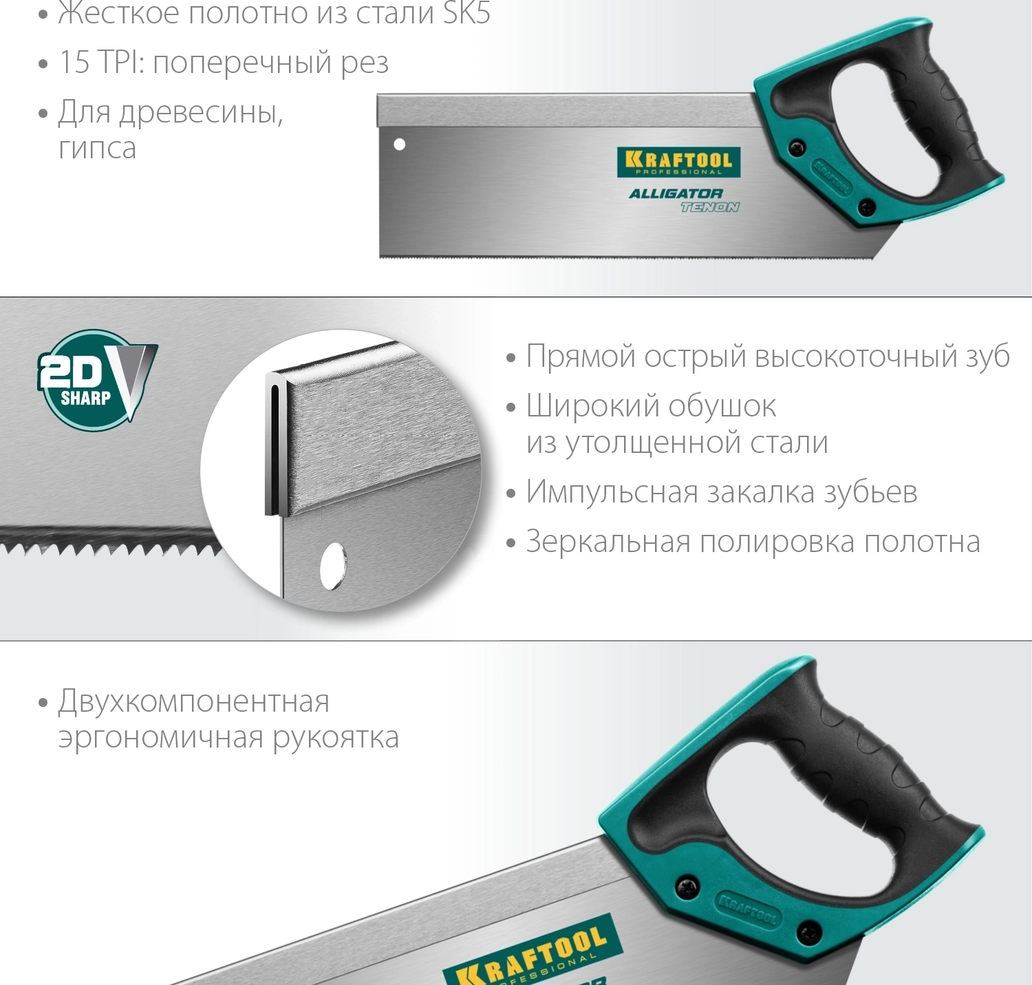 Ножовка с обушком для стусла KRAFTOOL Alligator Tenon 15, 300 мм