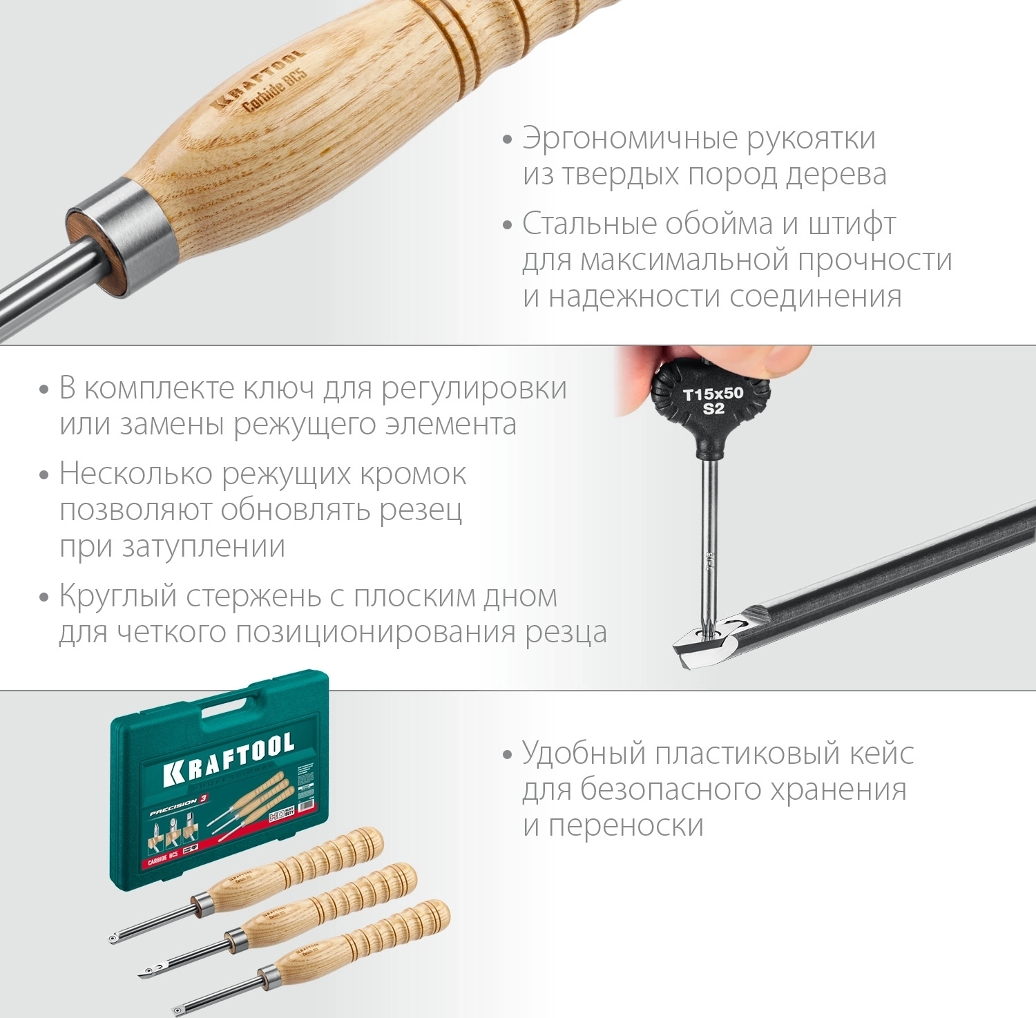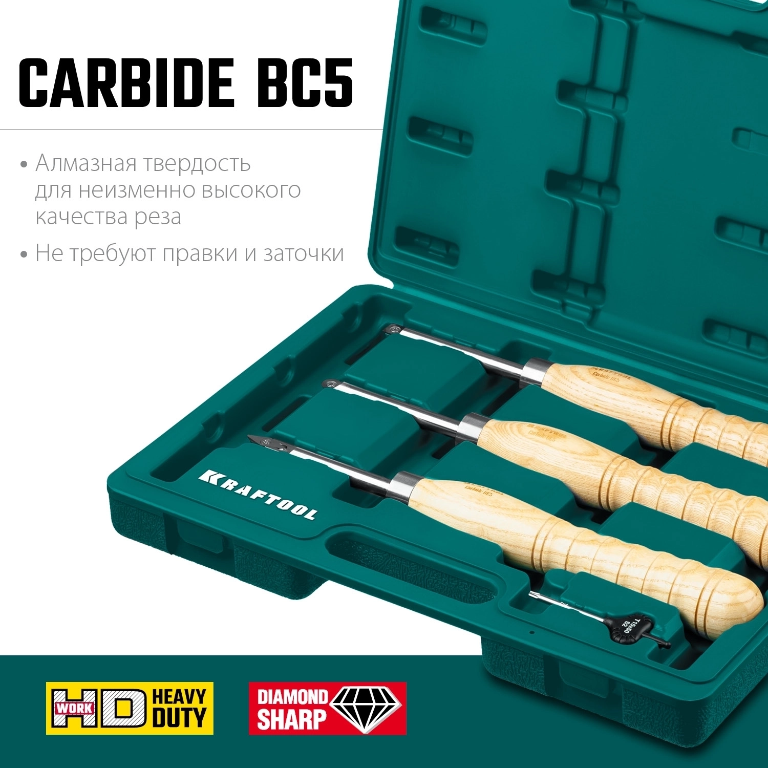 Набор ручных резцов по дереву KRAFTOOL Precision-3, 3 предм.