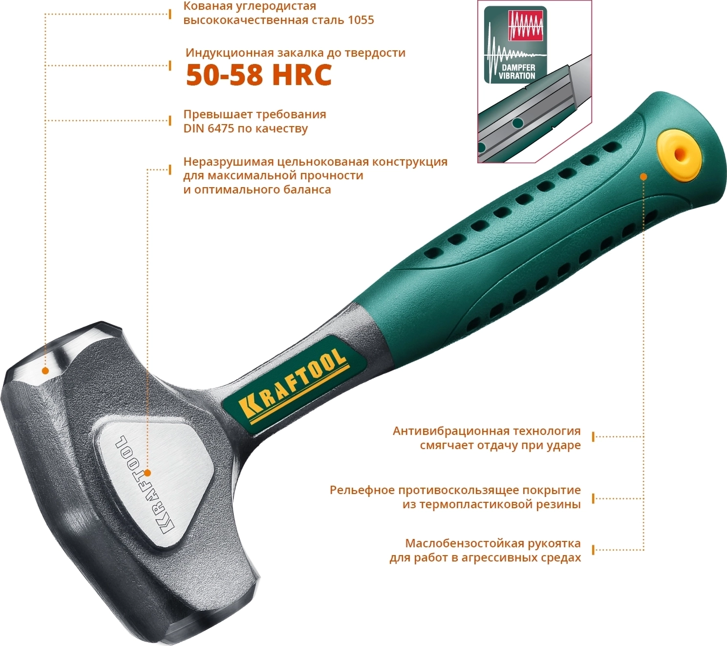 Профессиональный цельнокованый ударный инструмент обладает максимальной прочностью и обеспечивает самый длительный срок службы.