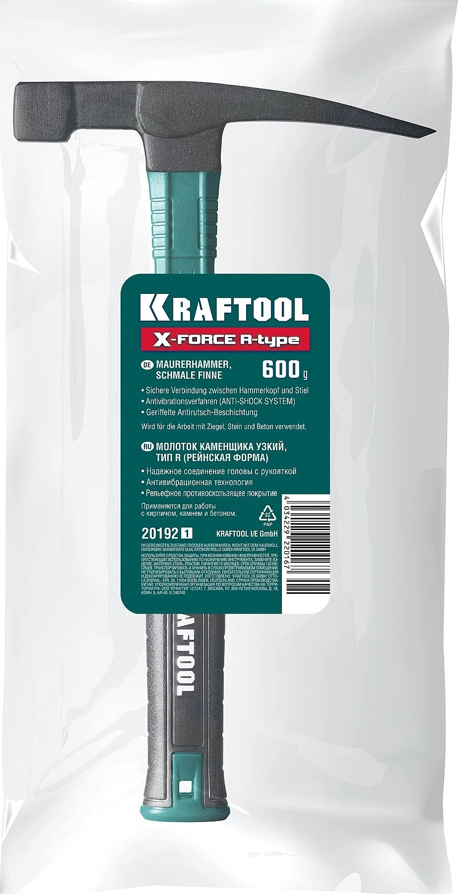 Молоток каменщика узкий KRAFTOOL X-FORCE R 600 г
