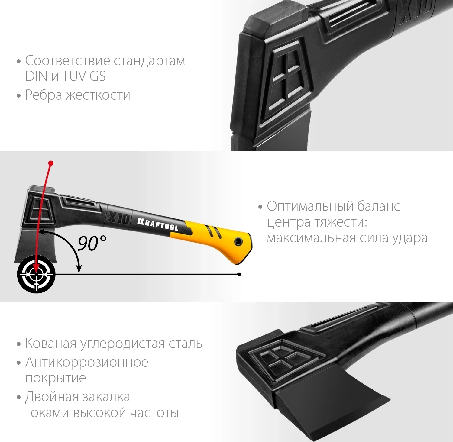 Универсальный топор KRAFTOOL X10, 750/1000 г, в чехле, 450 мм