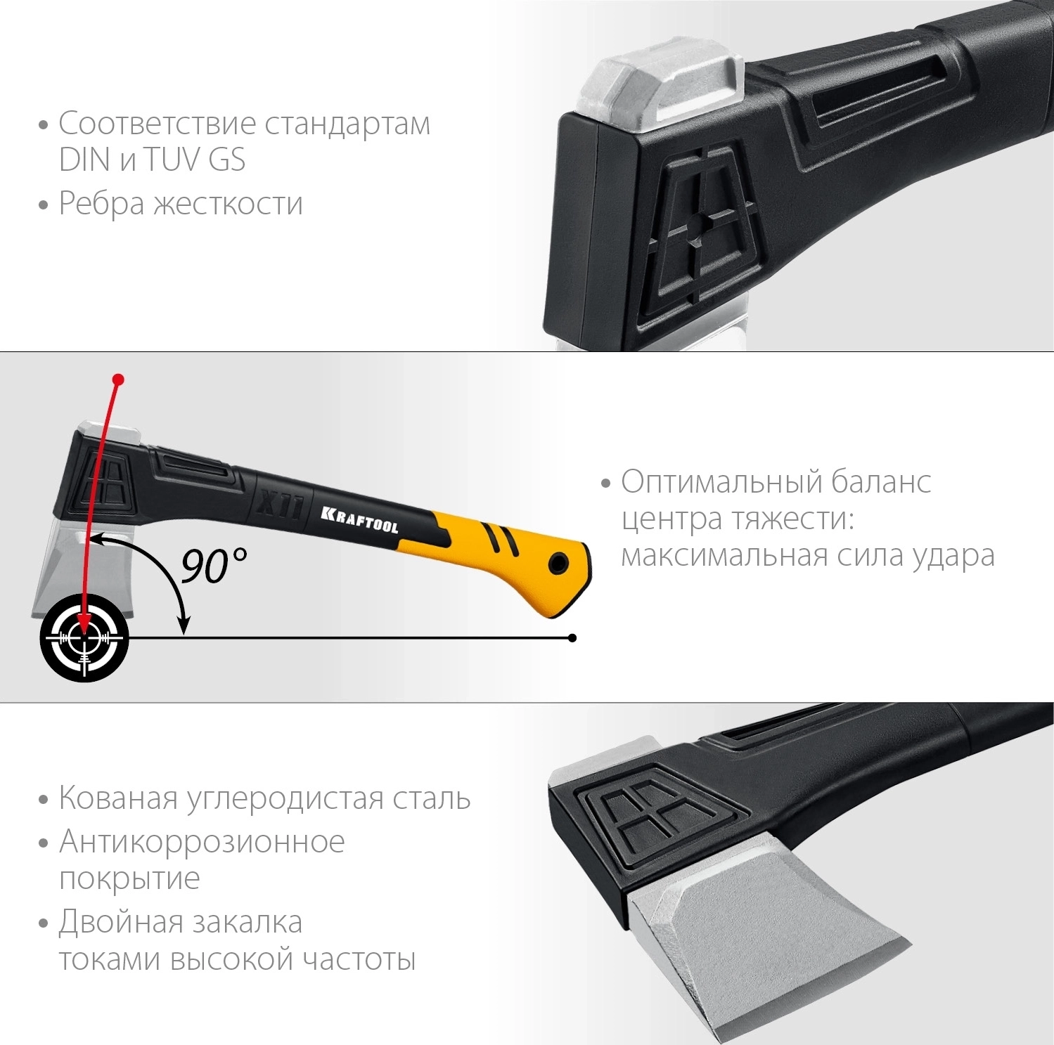 Топор-колун KRAFTOOL X11, 1100/1400 г, в чехле, 450 мм