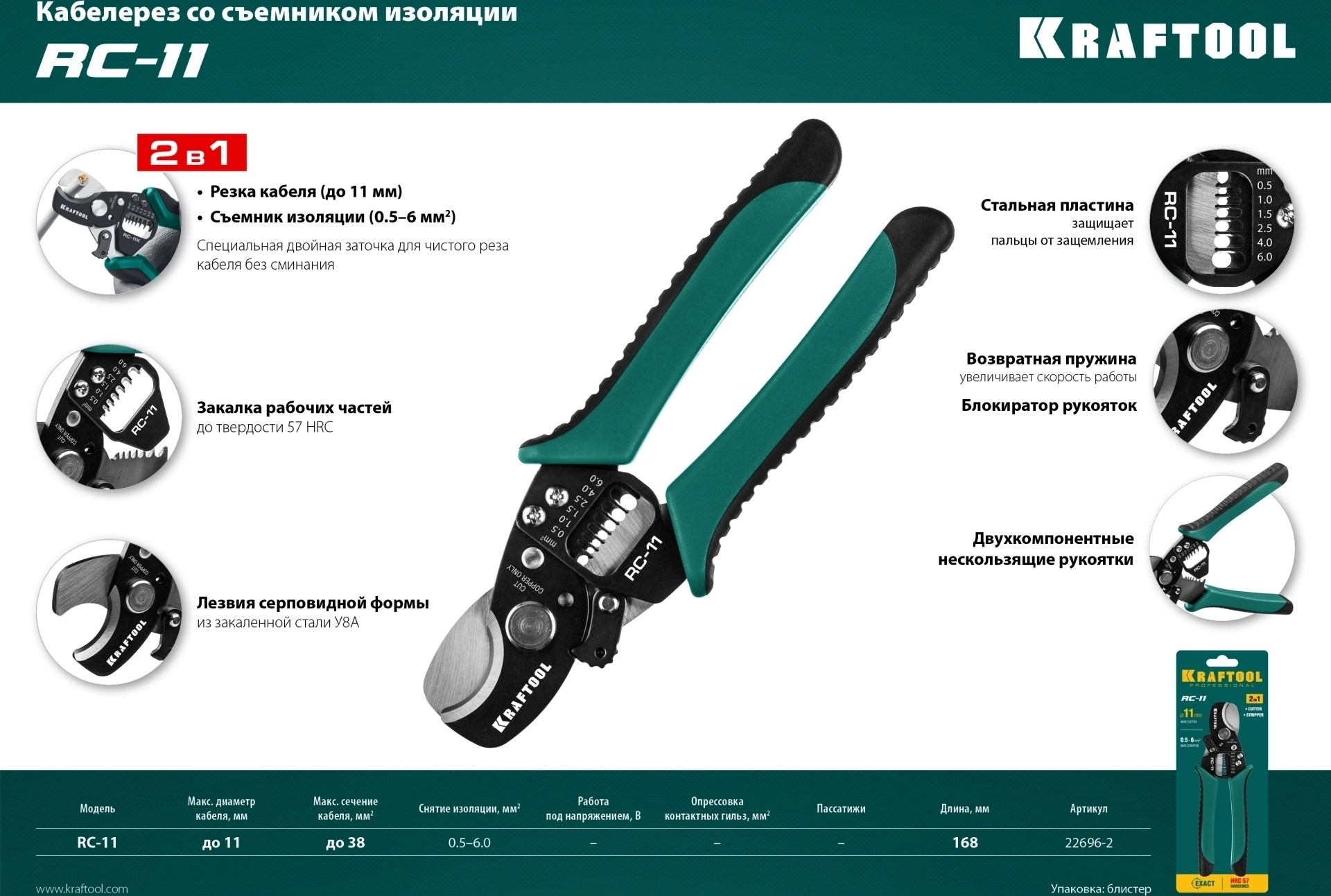 Кабельные ножницы KRAFTOOL RC-11, 2 в 1