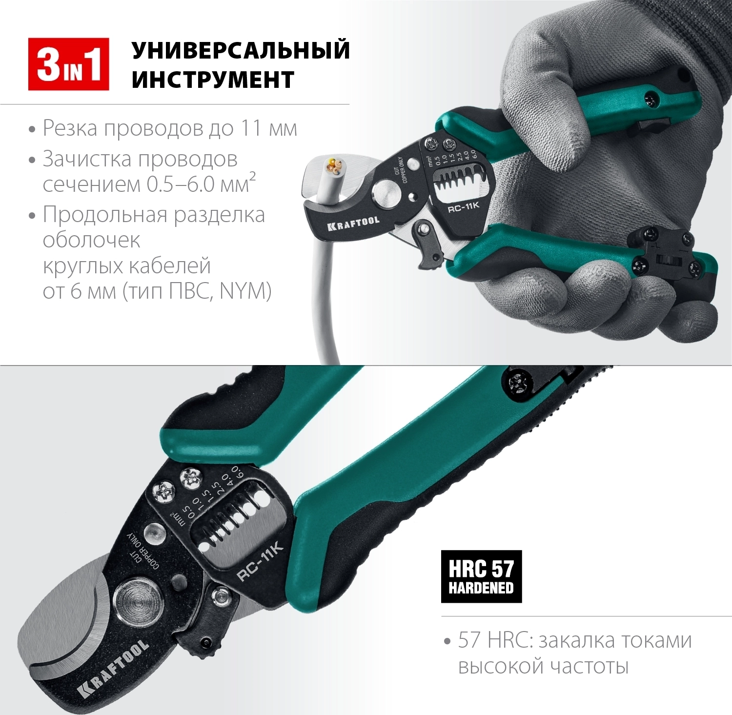 Кабельные ножницы KRAFTOOL RC-11 K, 3 в 1
