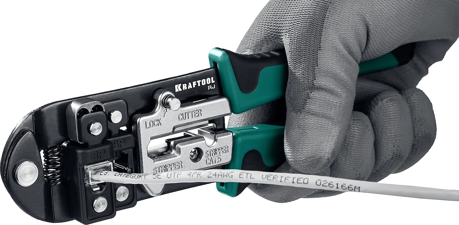 Универсальный кримпер KRAFTOOL RJ, (RJ45, RJ11,RJ12)