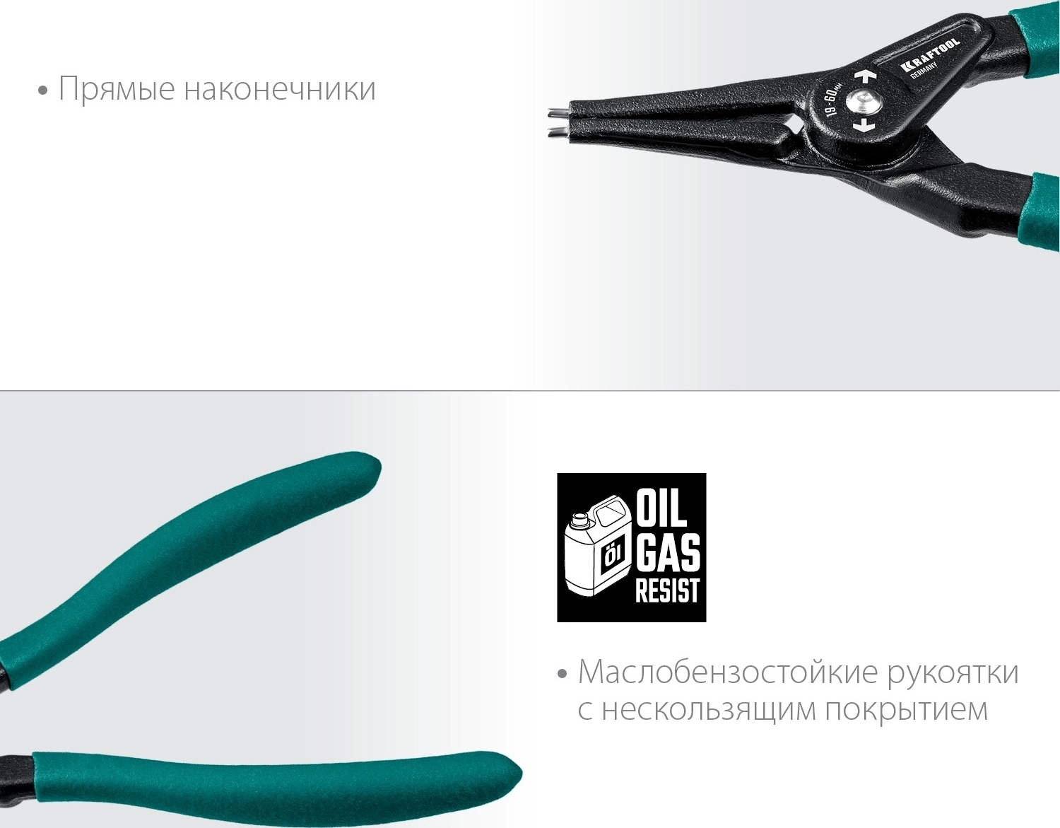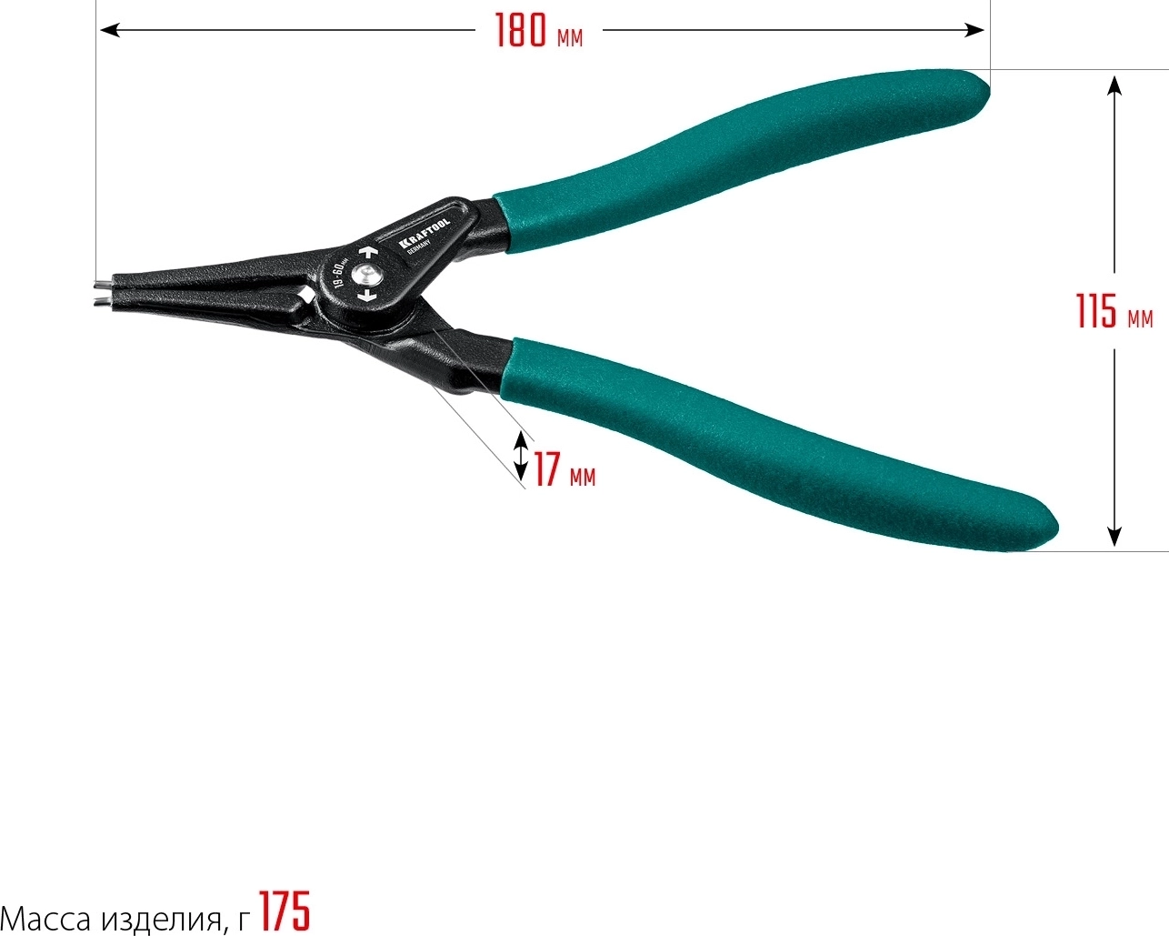 Съемник стопорных колец KRAFTOOL 180 мм, прямые губки, внешний