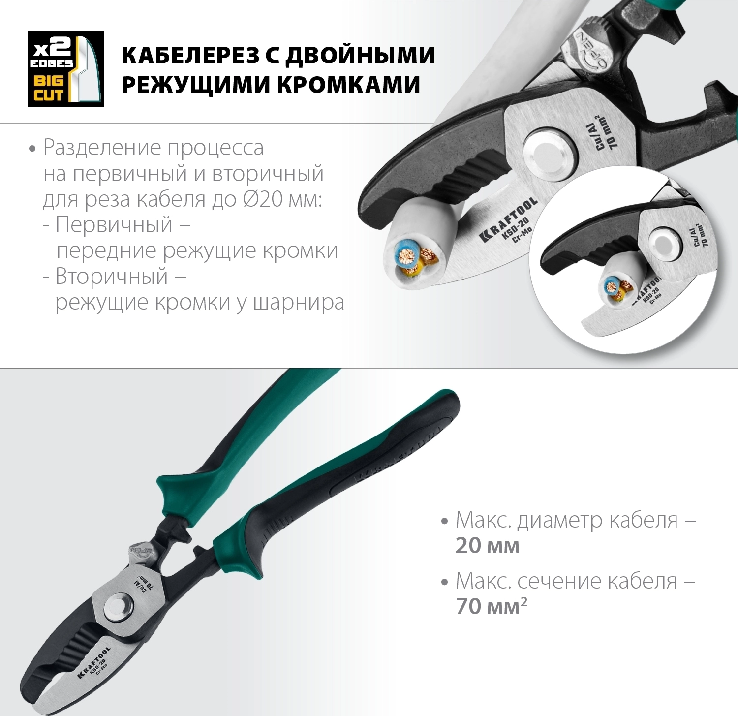 Кабелерез KRAFTOOL KSD-20, d 20мм, 200мм, с двойными режущими кромками