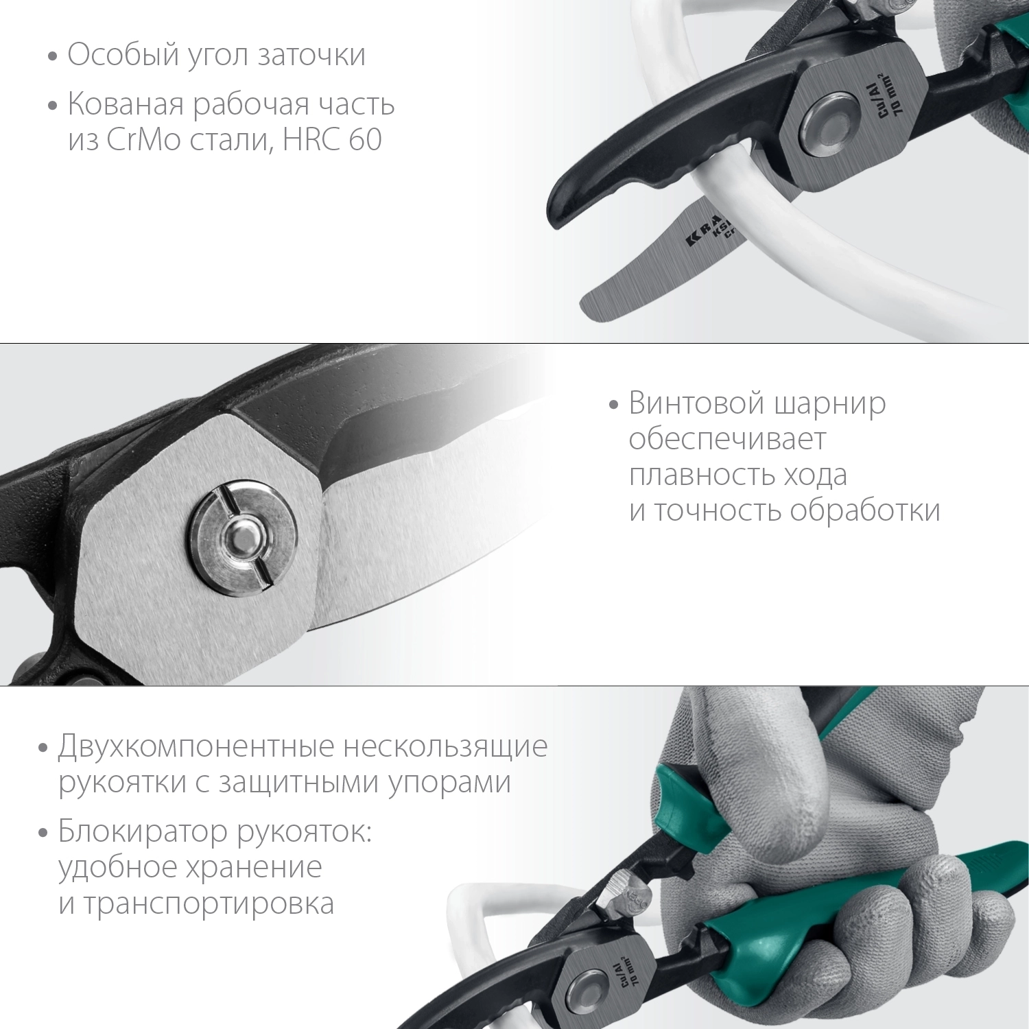 Использовать для перекусывания гибких проводников из цветных металлов установленного максимального диаметра. Не прикладывайте ударных нагрузок. Не использовать для работы под напряжением. Не предназначены для резки стальной проволоки и холоднотянутых медных проводов.