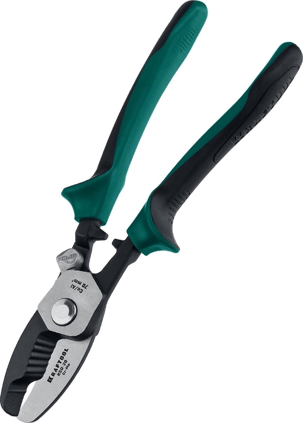Кабелерез с двойными режущими кромками изготовлен из высококачественной инструментальной стали и предназначен для перекусывания гибких проводников из цветных металлов (Cu + Al) диаметром до 20мм. Благодаря разделению процесса резки на первичную (изоляция в передней области резки) и вторичную (проводник в задней области резки) можно производить резку кабелей большого диаметра, одной рукой.