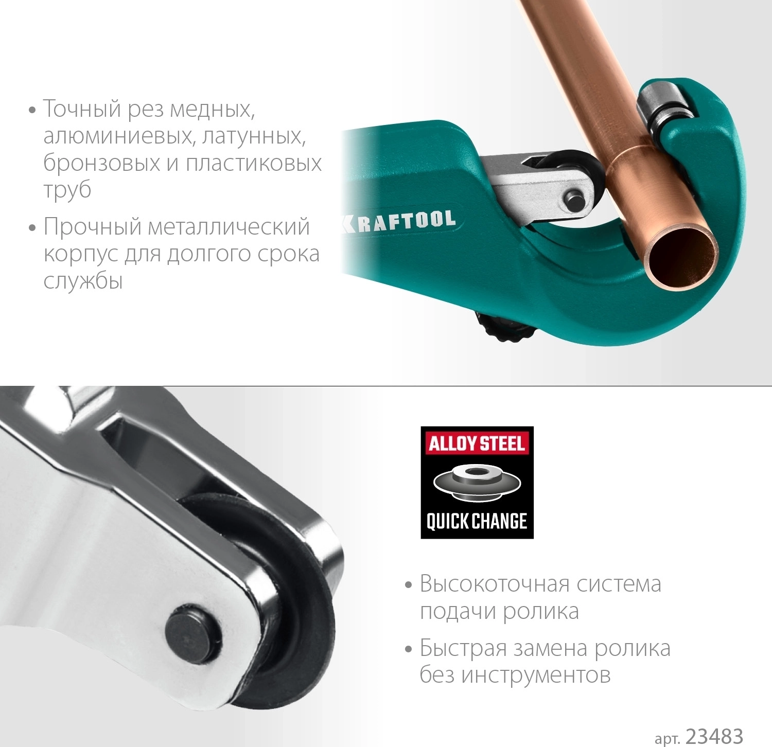 Труборезы Kraftool разработаны в соответствии с высокими требованиями профессионалов. Режущие элементы, изготовленные из легированной стали высшего качества, обеспечивают высокую режущую способность в течение продолжительного срока службы . Инновационная система крепления обеспечивает быструю и легкую смену режущего элемента, комфортную и эффективную работу.