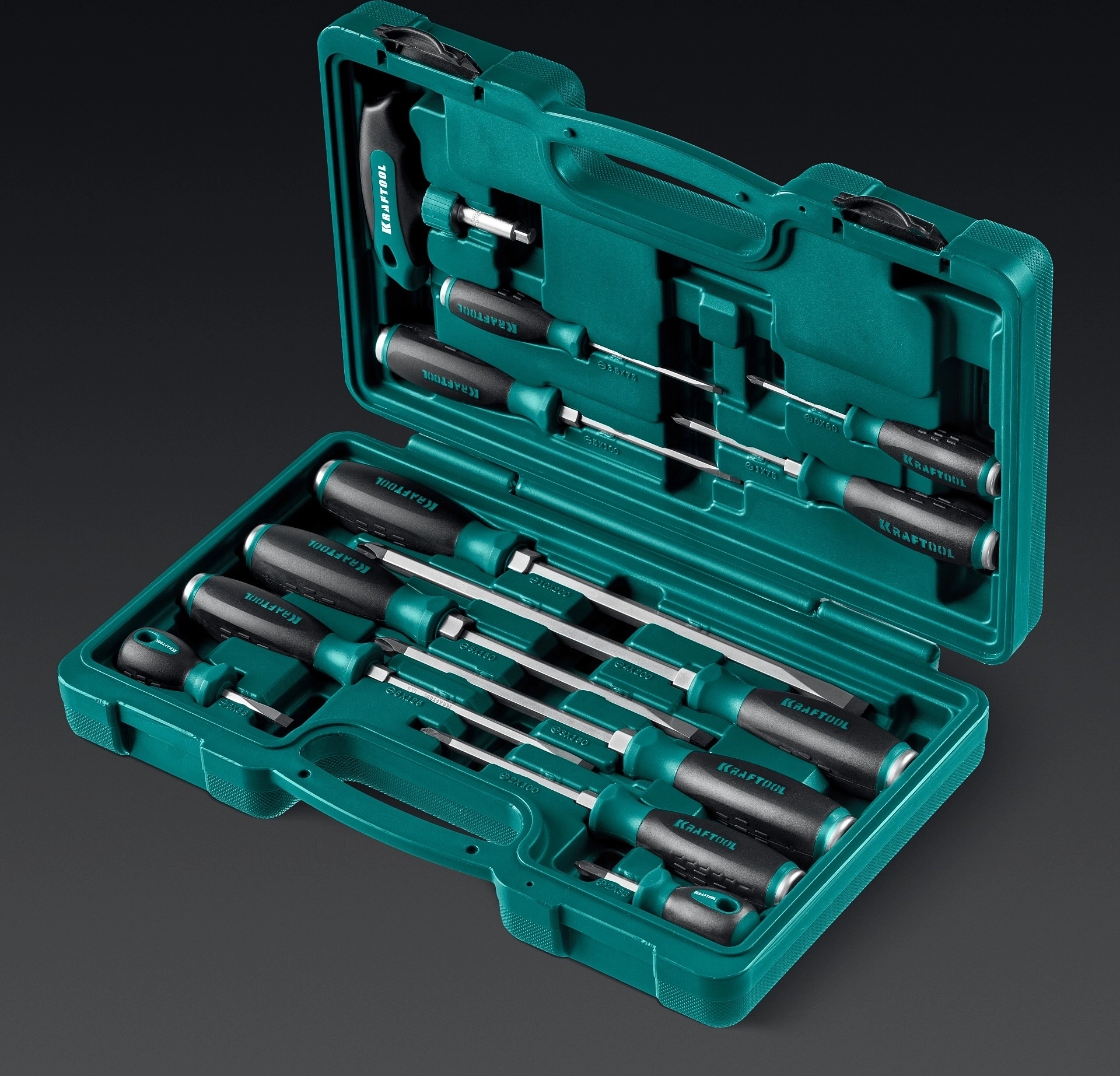 Набор ударных отверток KRAFTOOL IMPACT 13 шт, сквозной стержень Cr-Mo