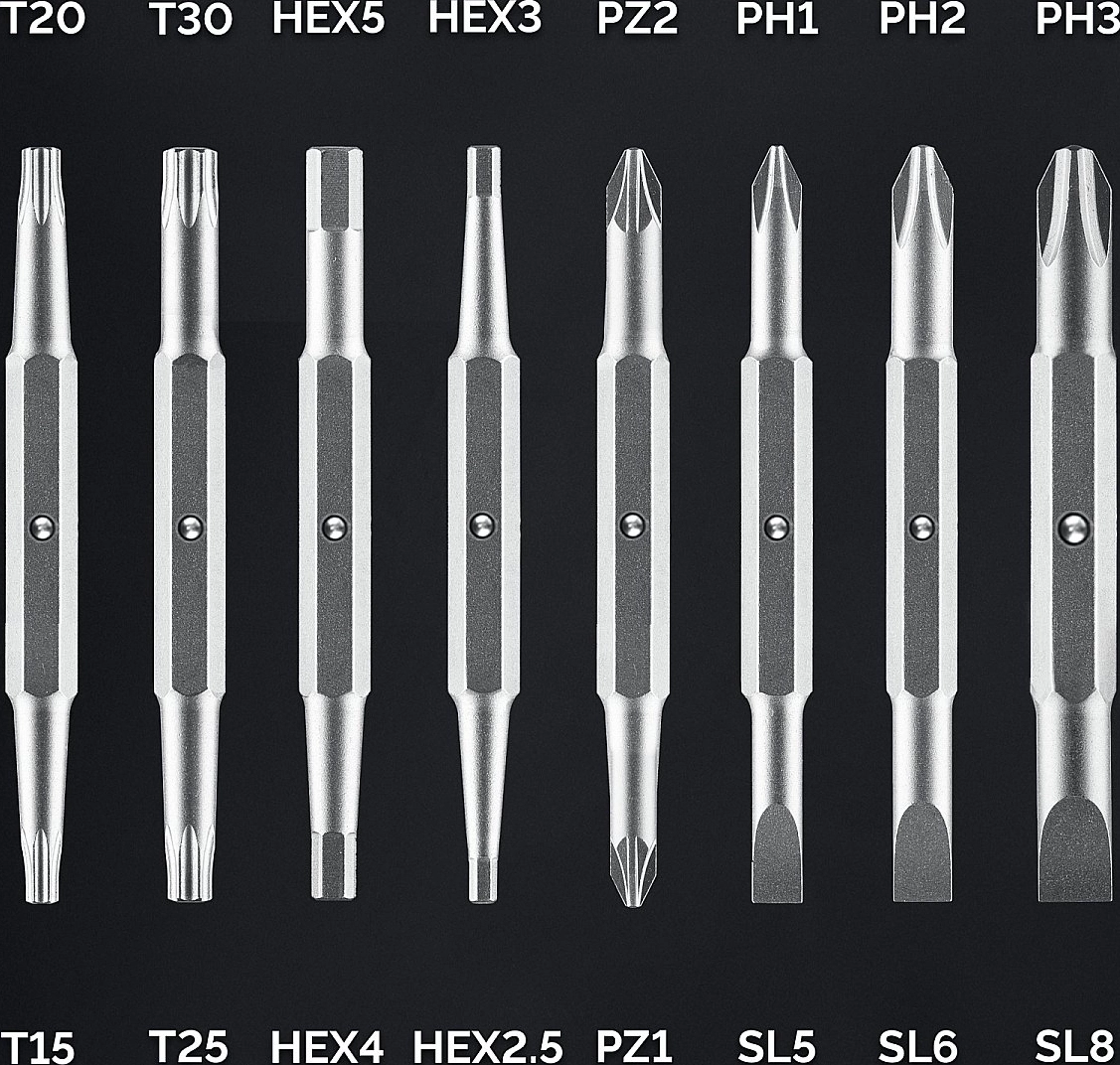 - 19-в-1 хранение двухсторонних бит внутри рукоятки