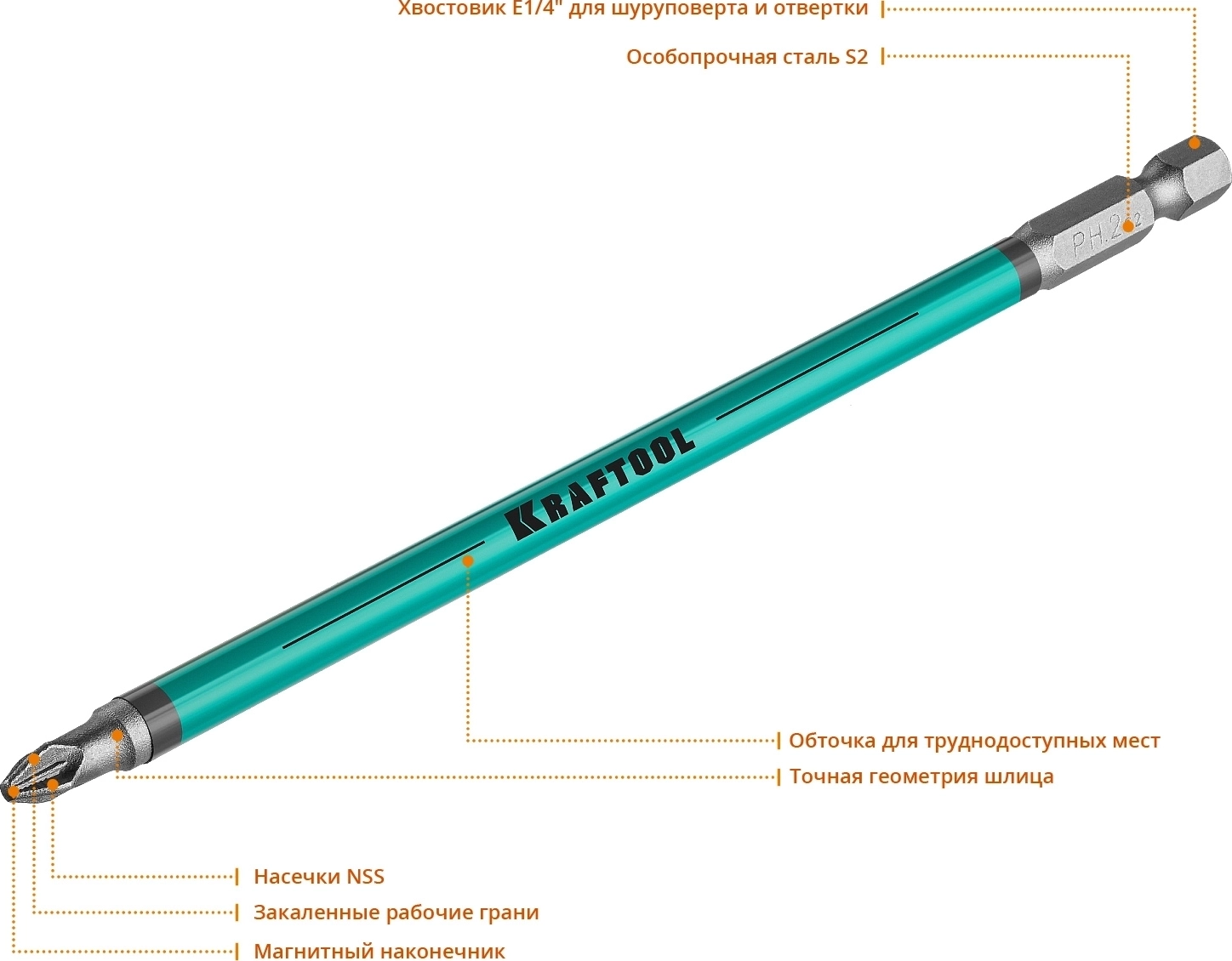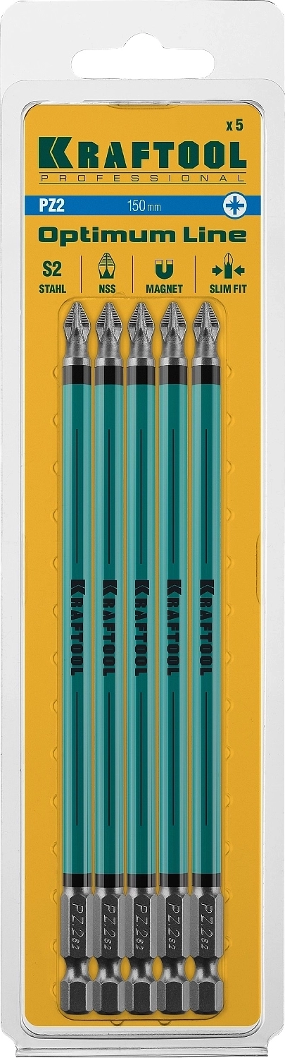 Биты KRAFTOOL Optimum PZ2, 150 мм, 5 шт