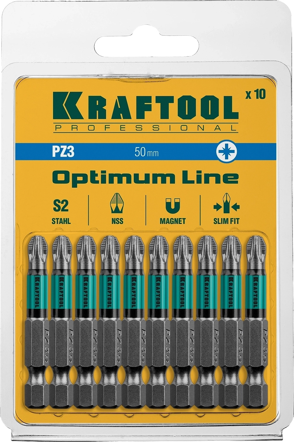 Биты KRAFTOOL Optimum PZ3, 50 мм, 10 шт