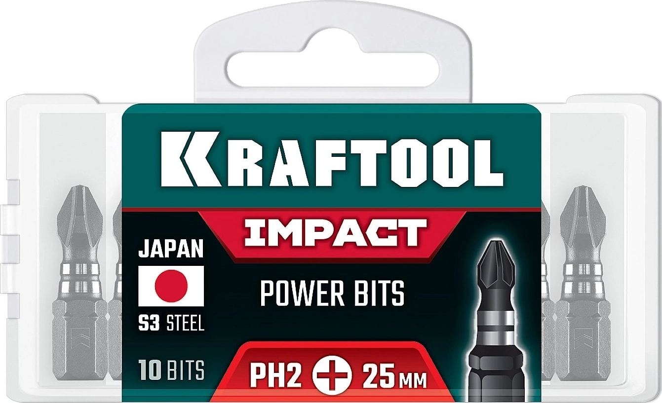 Ударные биты KRAFTOOL Impact PH 2, 25 мм, 10 шт