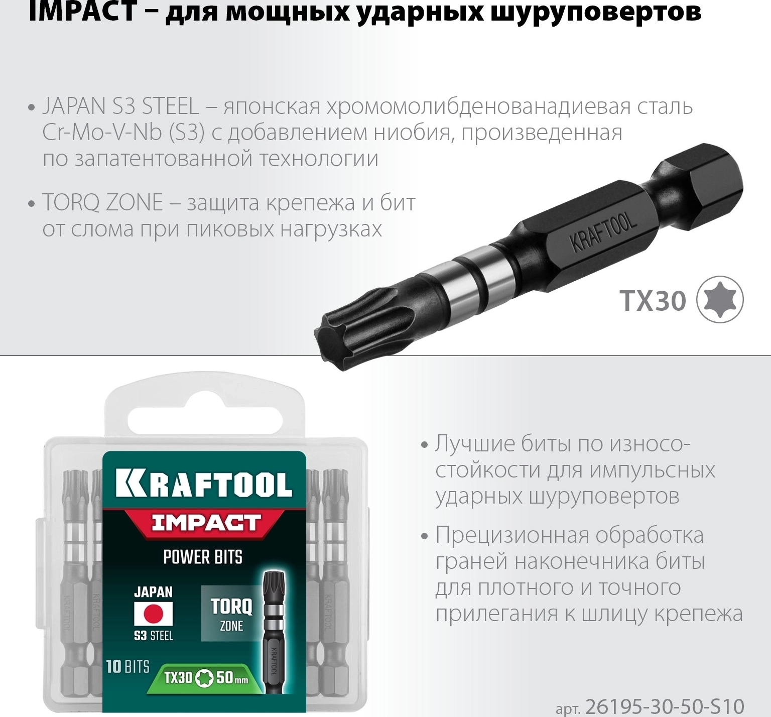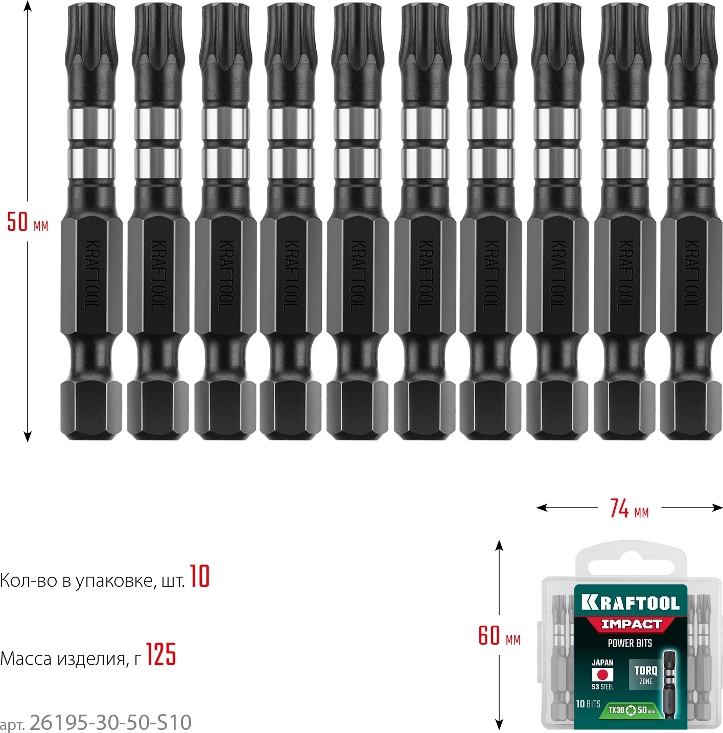 Ударные биты KRAFTOOL Impact TX30, 50 мм, 10 шт