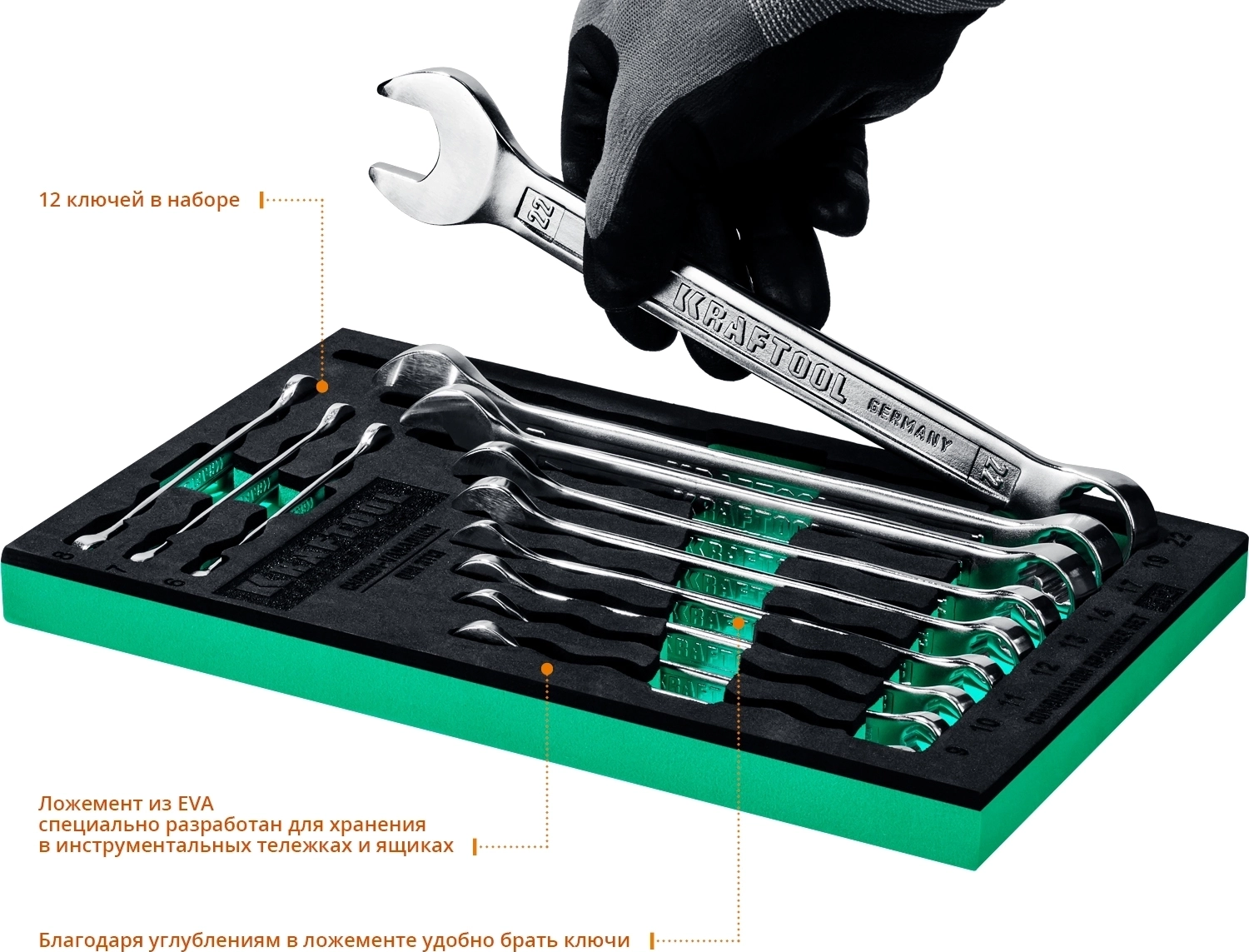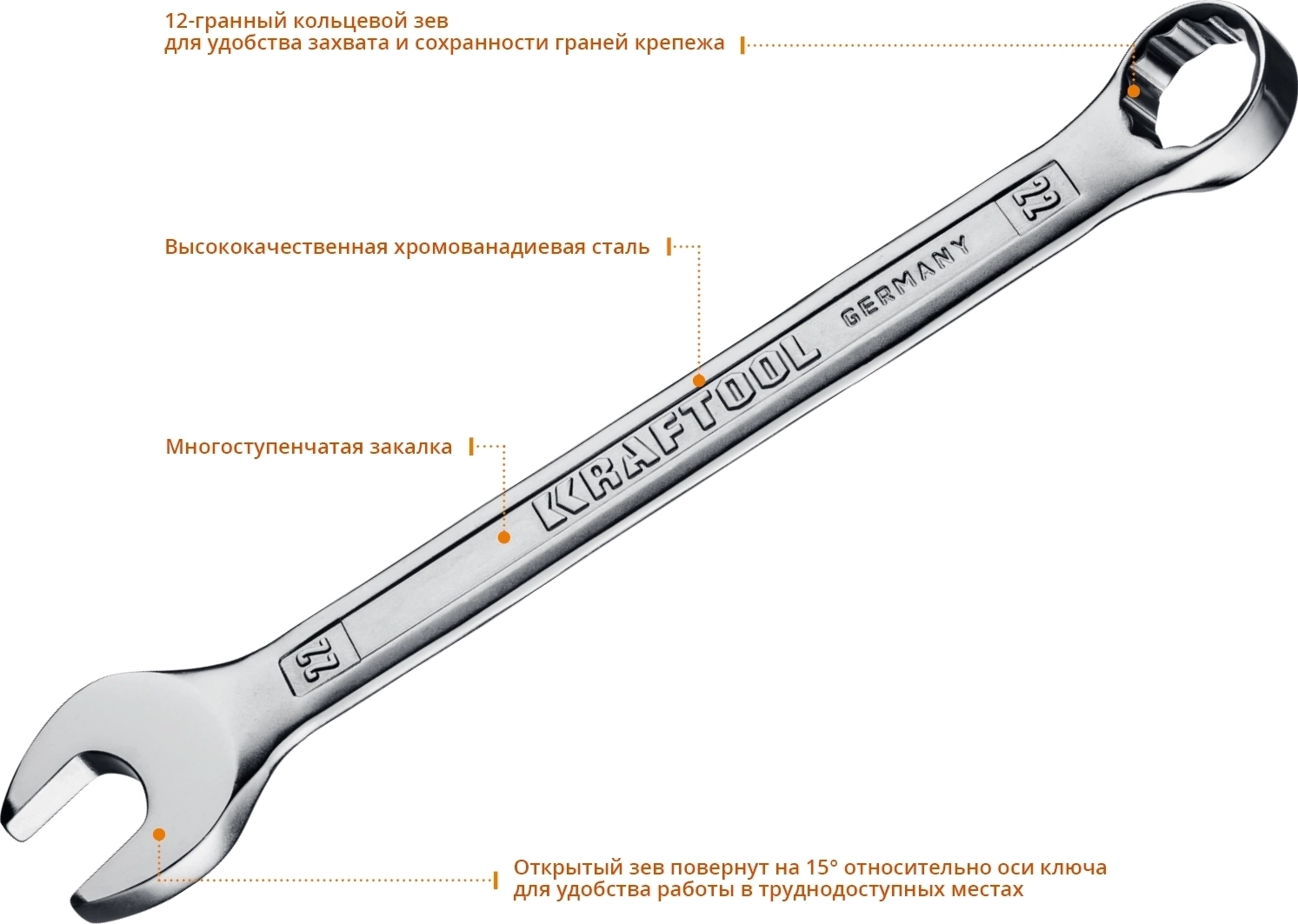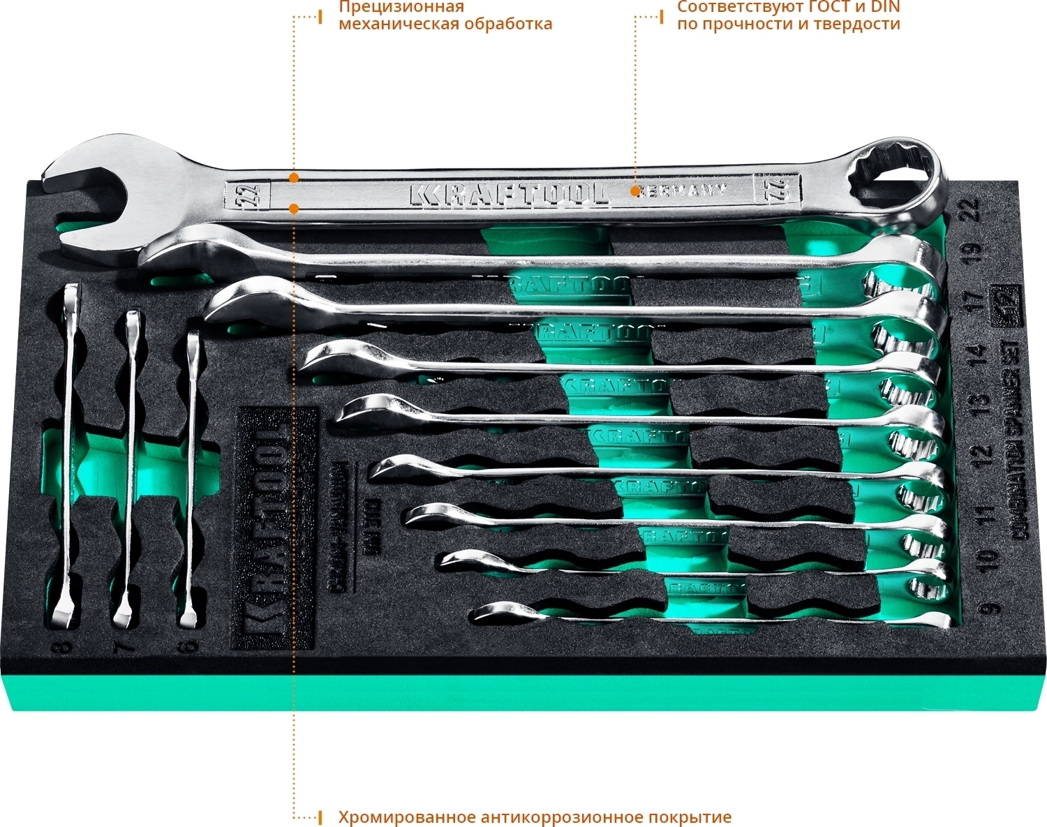 Набор комбинированных гаечных ключей KRAFTOOL 12 шт, 6 - 22 мм