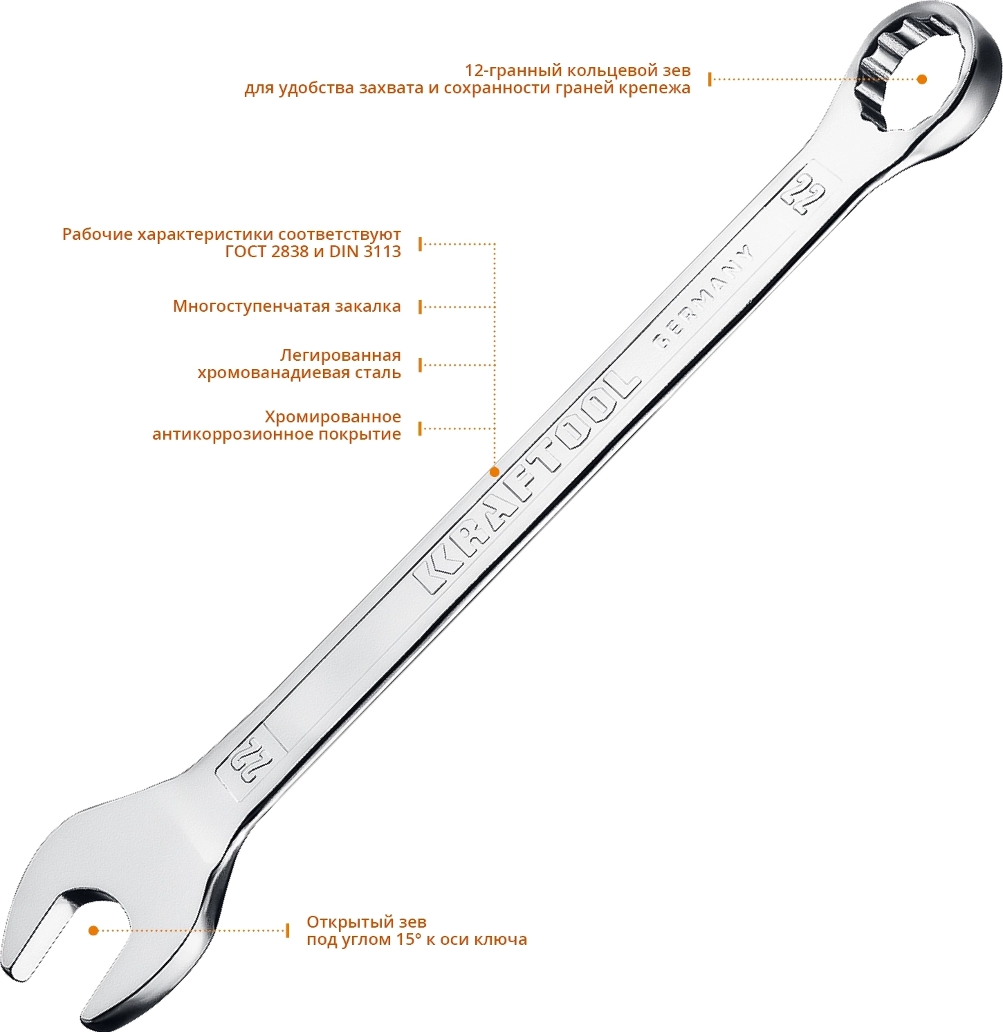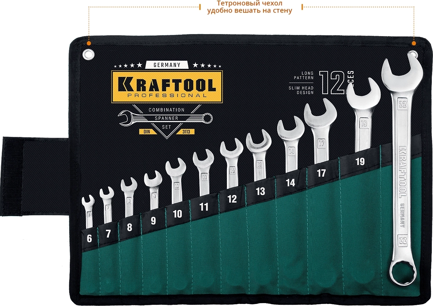 Набор комбинированных гаечных ключей KRAFTOOL 12 шт, 6 - 22 мм
