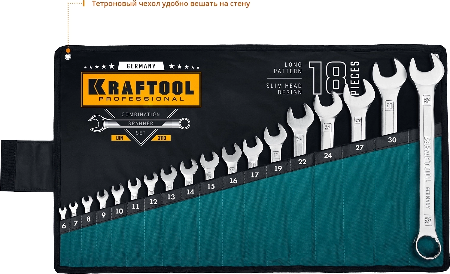 Набор комбинированных гаечных ключей KRAFTOOL 18 шт, 6 - 32 мм