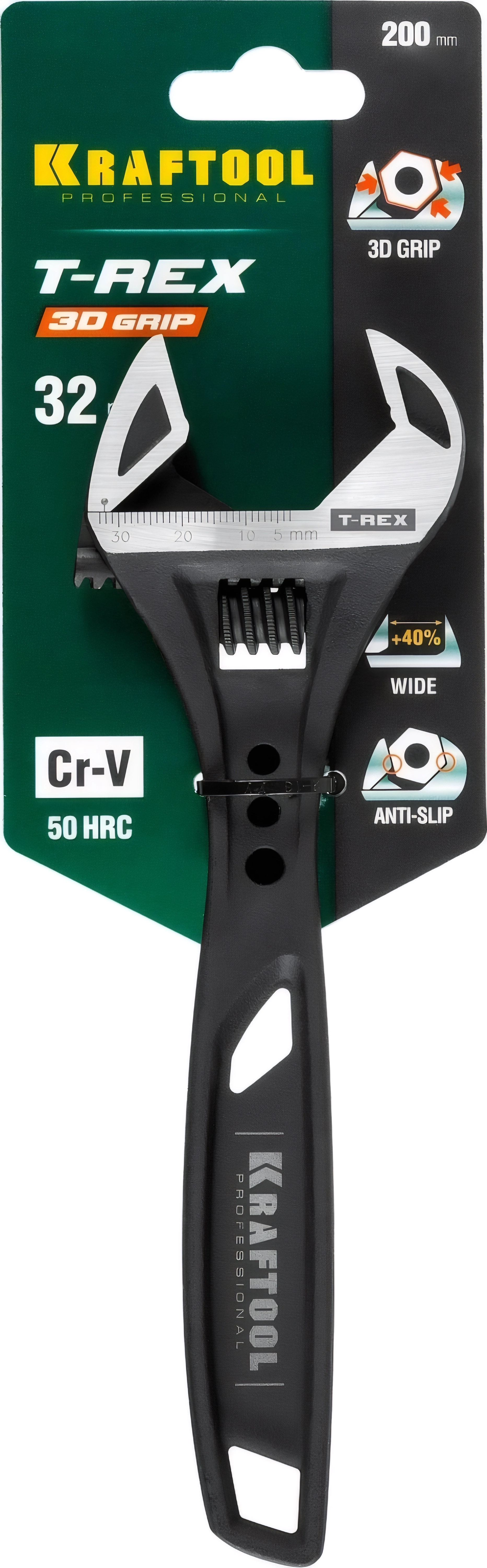 Силовой разводной ключ KRAFTOOL T-REX, 200/32 мм