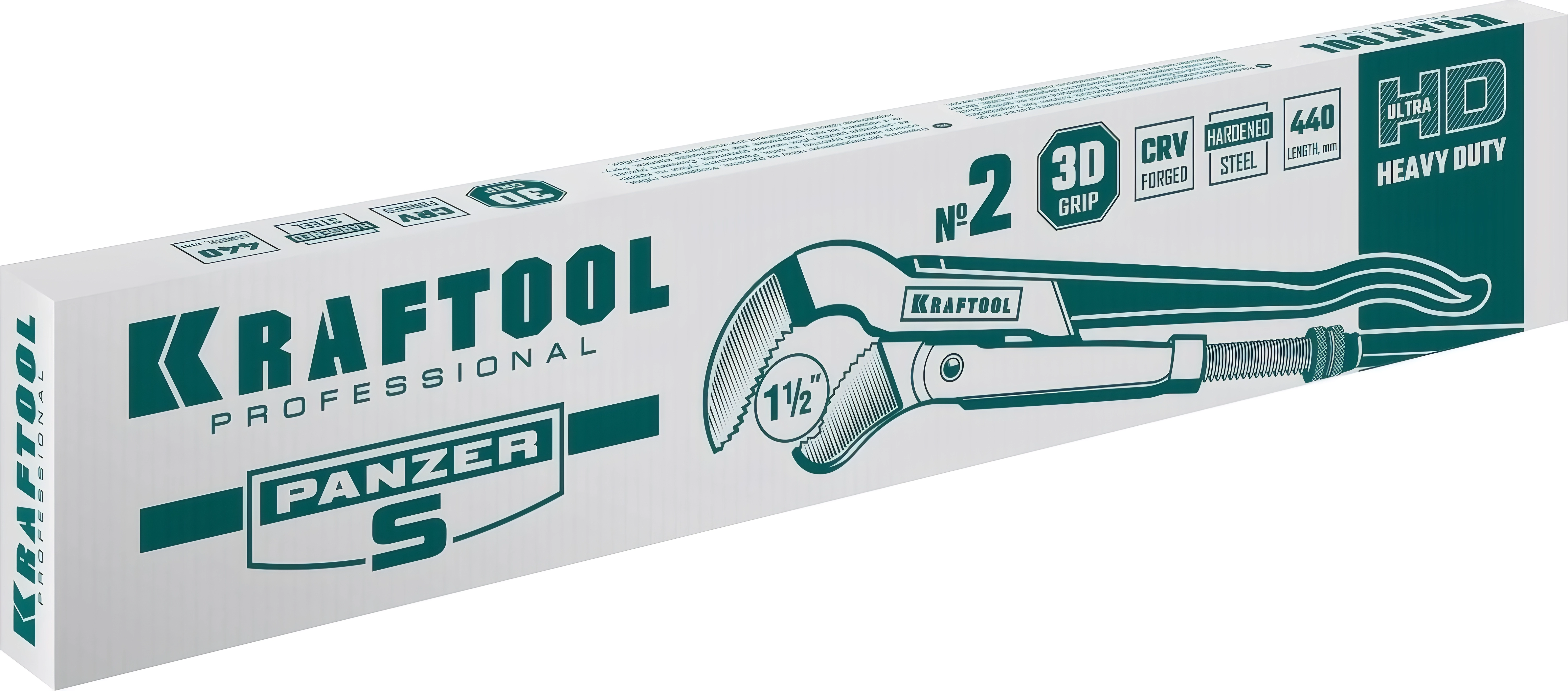 Трубный ключ с изогнутыми губками KRAFTOOL PANZER-S, №2, 1.5″, 440 мм