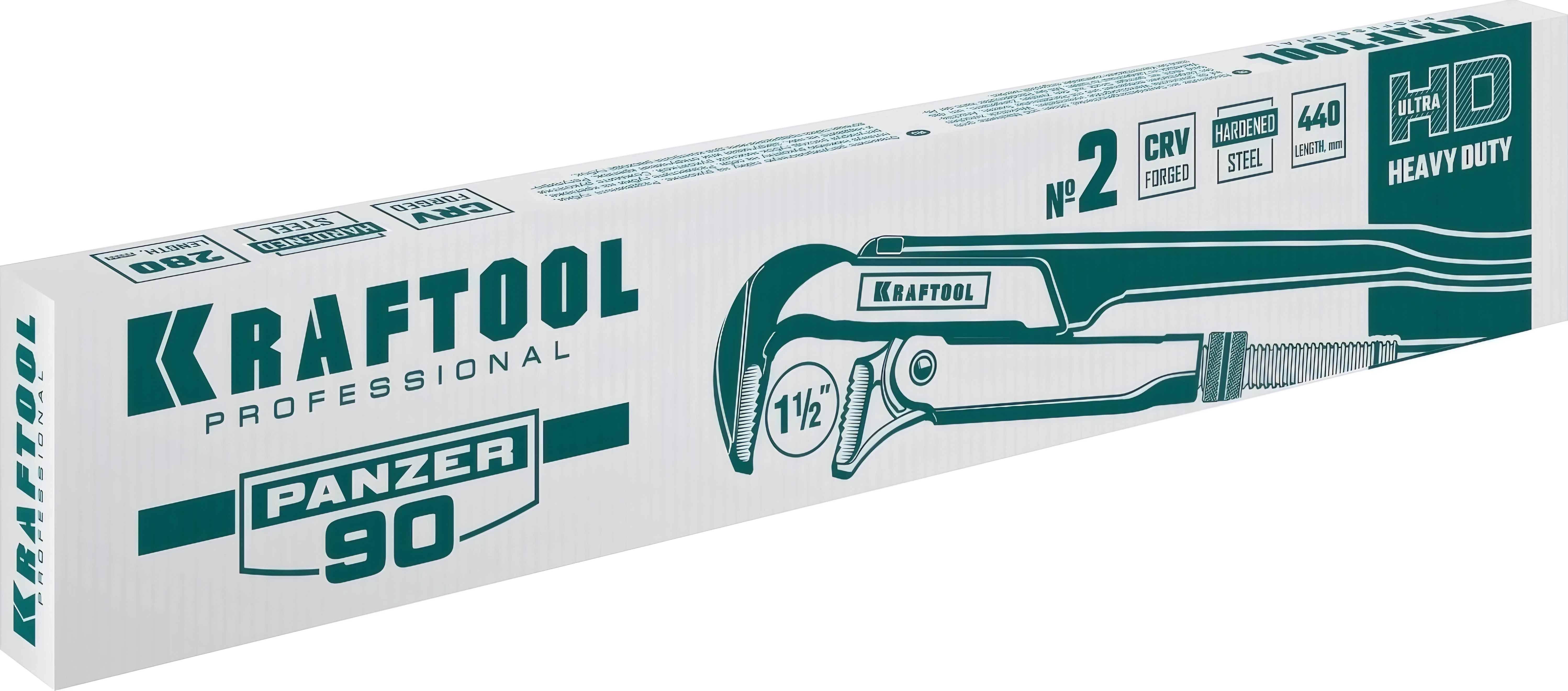 Трубный ключ с прямыми губками KRAFTOOL PANZER-90, №2, 1.5″, 440 мм