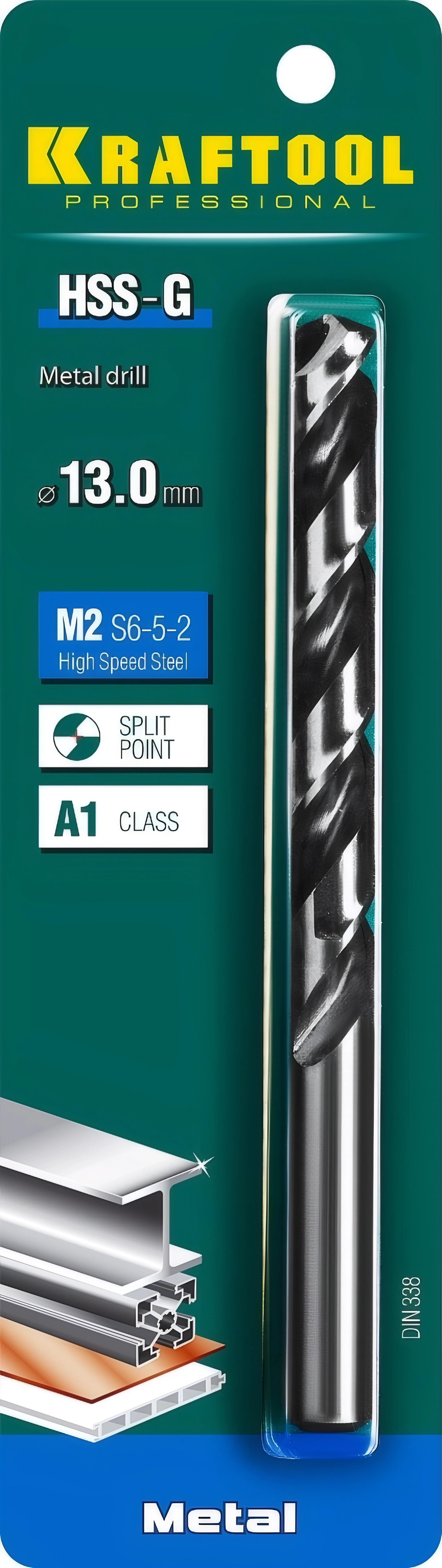 Сверло по металлу KRAFTOOL HSS-G, 13.0 х 151 мм, сталь P6M5