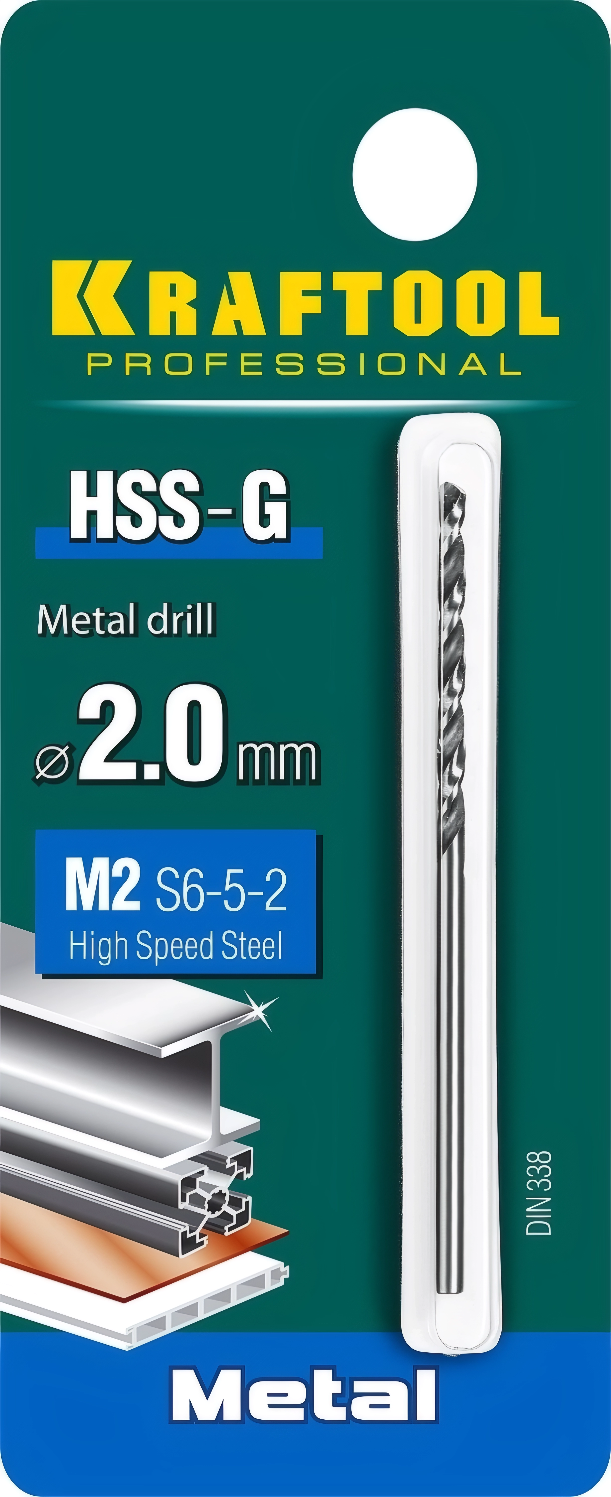 Сверло по металлу KRAFTOOL HSS-G, 2.0 х 49 мм, сталь P6M5