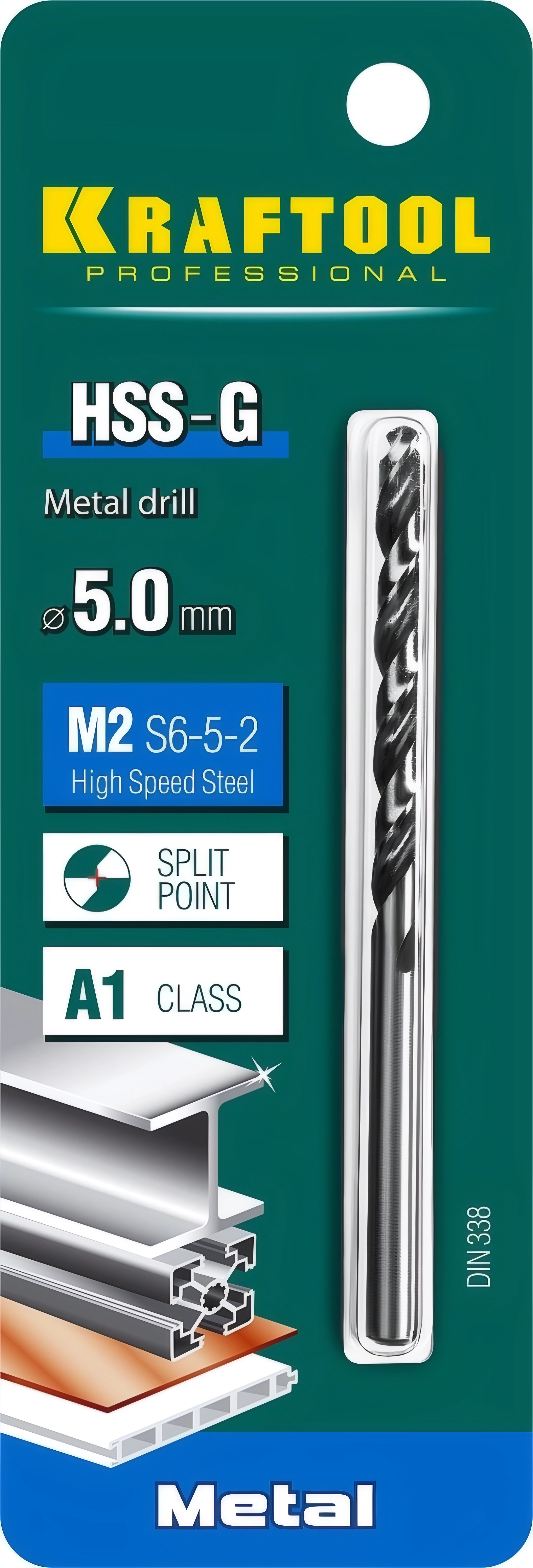 Сверло по металлу KRAFTOOL HSS-G, 5.0 х 86 мм, сталь P6M5