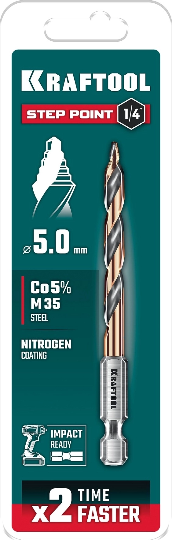 Сверло по металлу для винтовёртов и шуруповертов IMPACT READY KRAFTOOL STEP POINT, d 5.0 х 91 мм