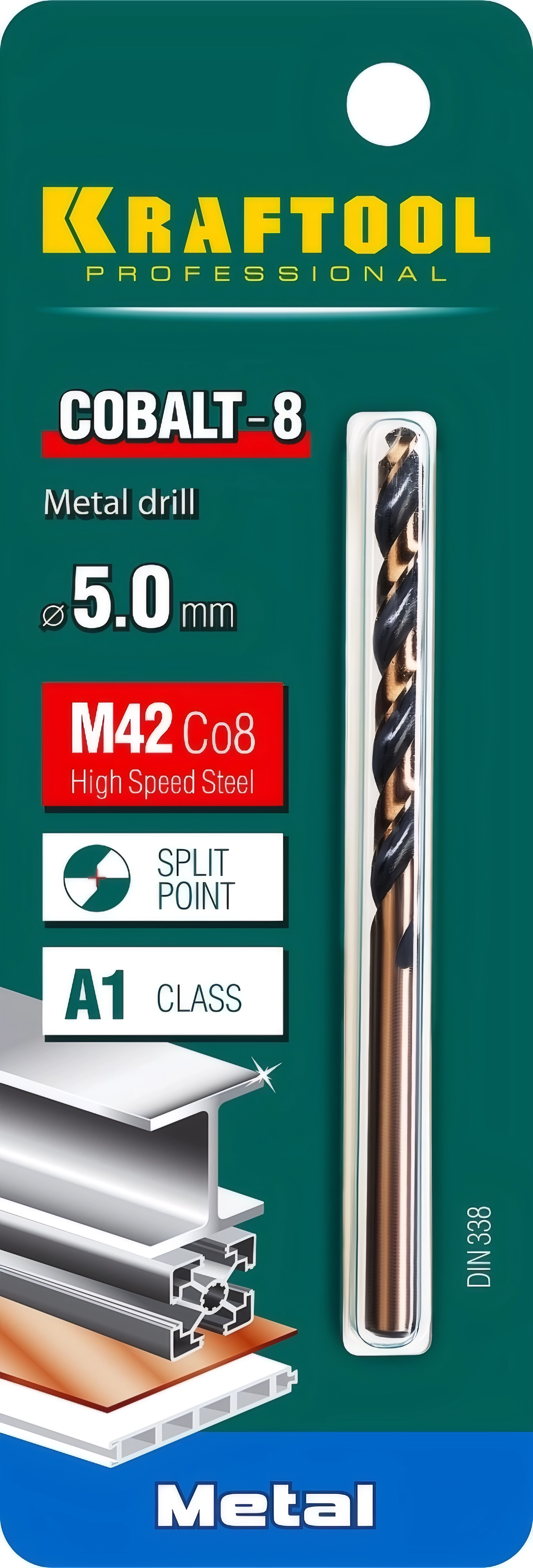 Сверло по металлу KRAFTOOL COBALT-8, 5.0 х 86 мм, сталь М42, HSS-Co(8%)