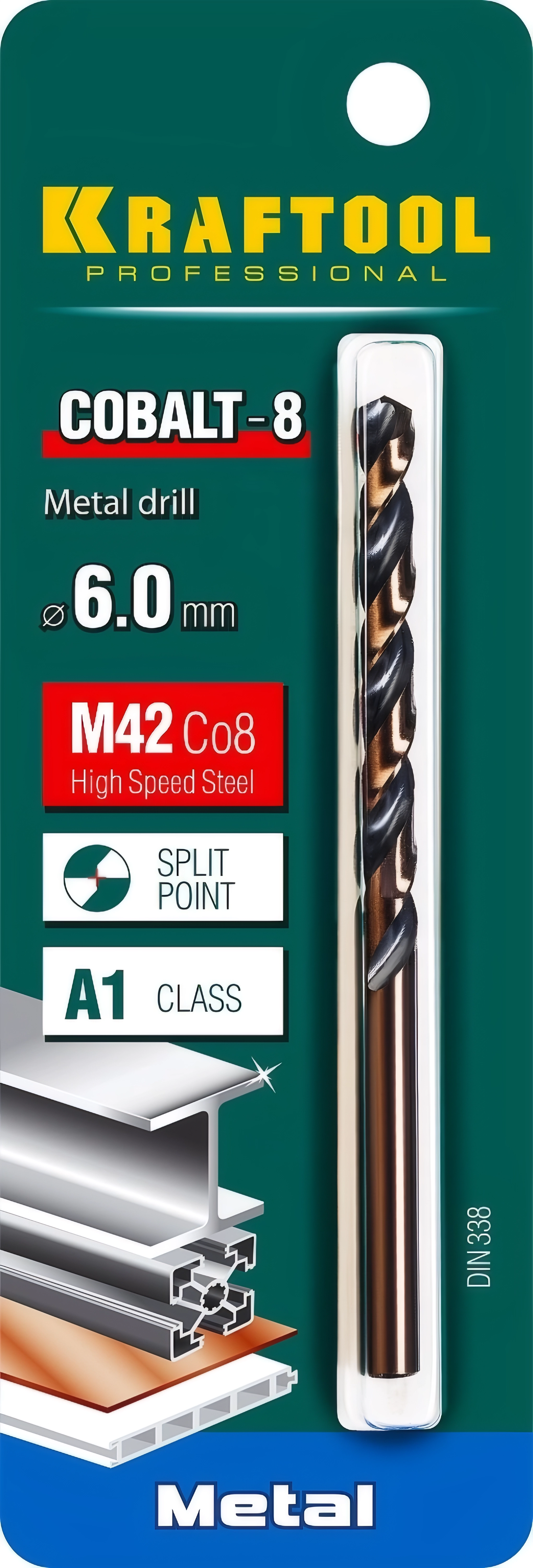 Сверло по металлу KRAFTOOL COBALT-8, 6.0 х 93 мм, сталь М42, HSS-Co(8%)