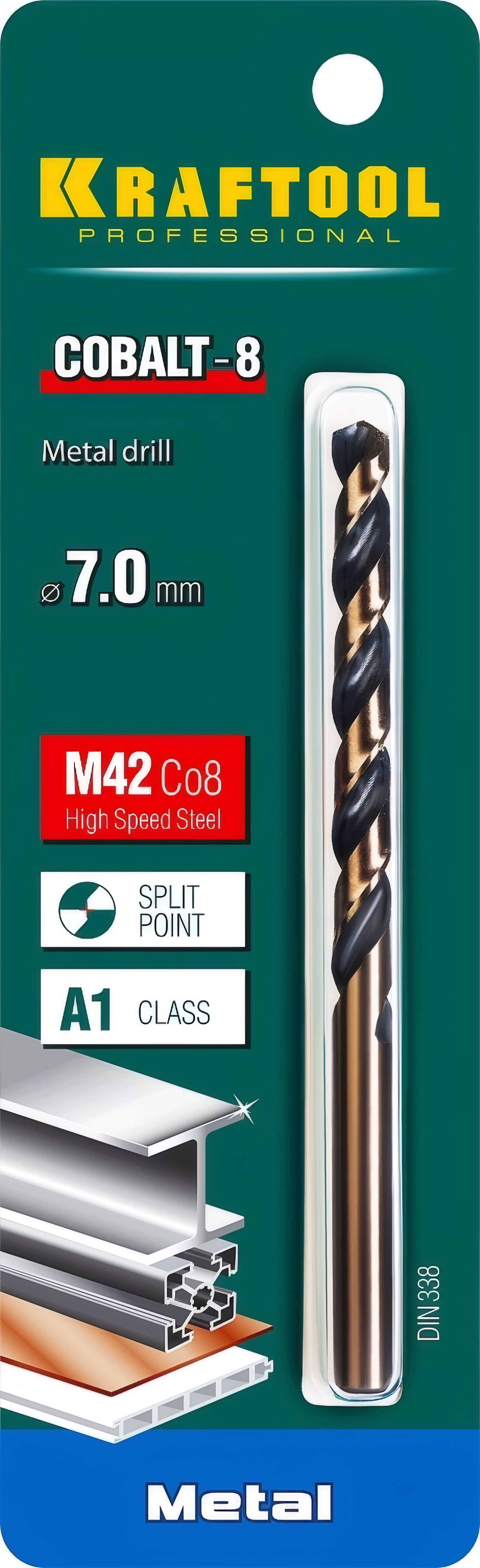 Сверло по металлу KRAFTOOL COBALT-8, 7.0 х 109 мм, сталь М42, HSS-Co(8%)