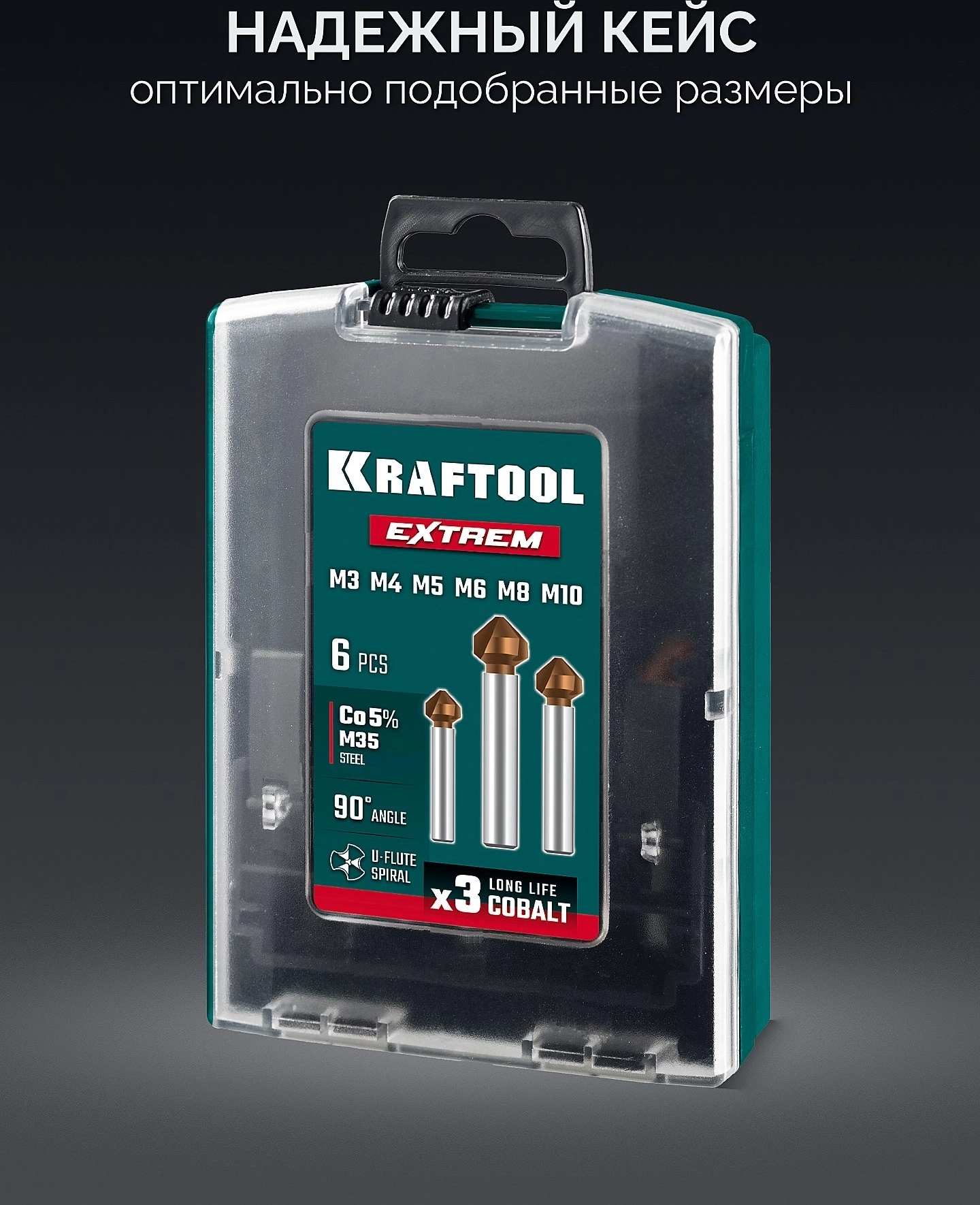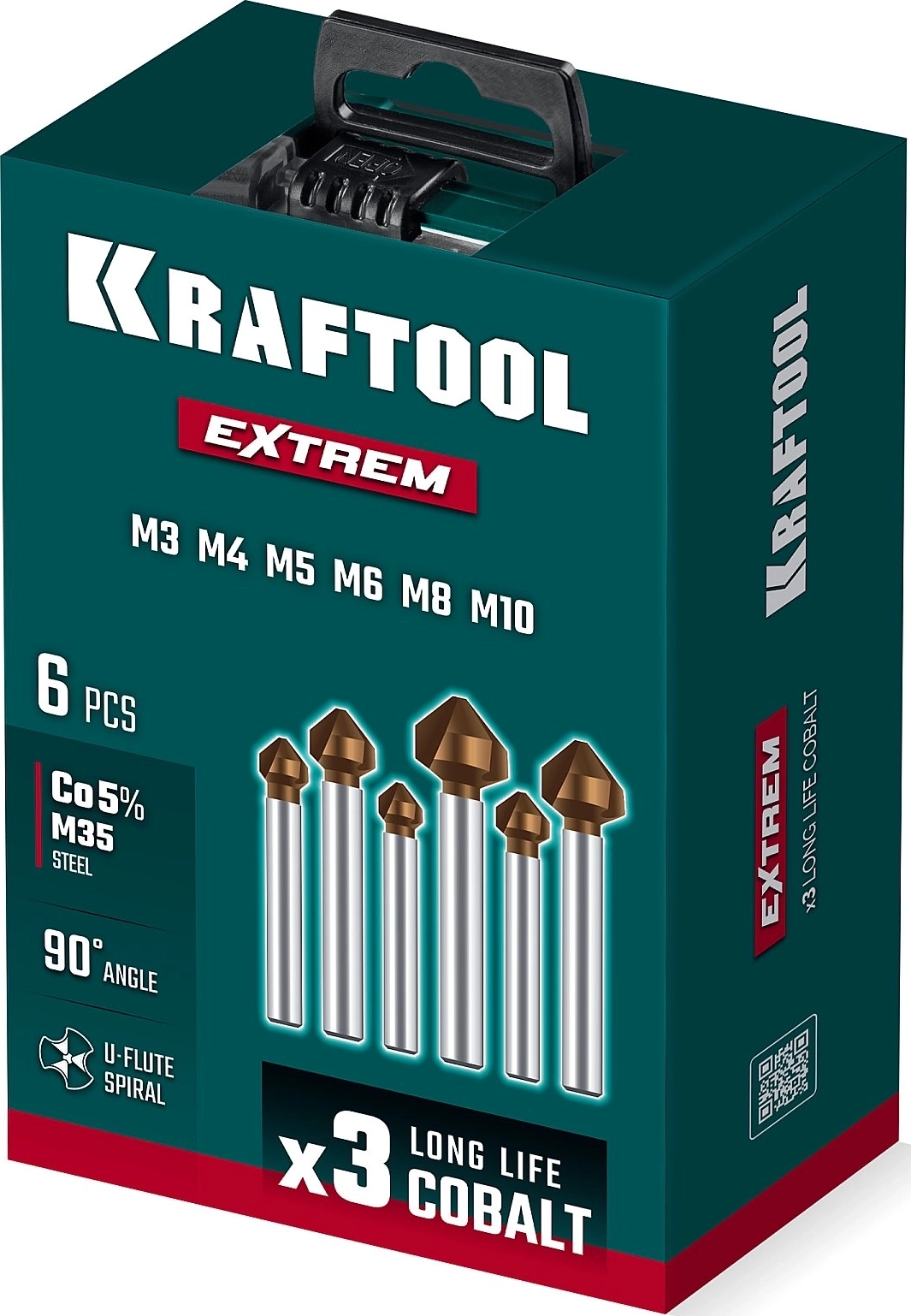 Набор зенкеров KRAFTOOL EXTREME Со5-А, 6 шт (М3-М10), сталь M35, U-образная спираль