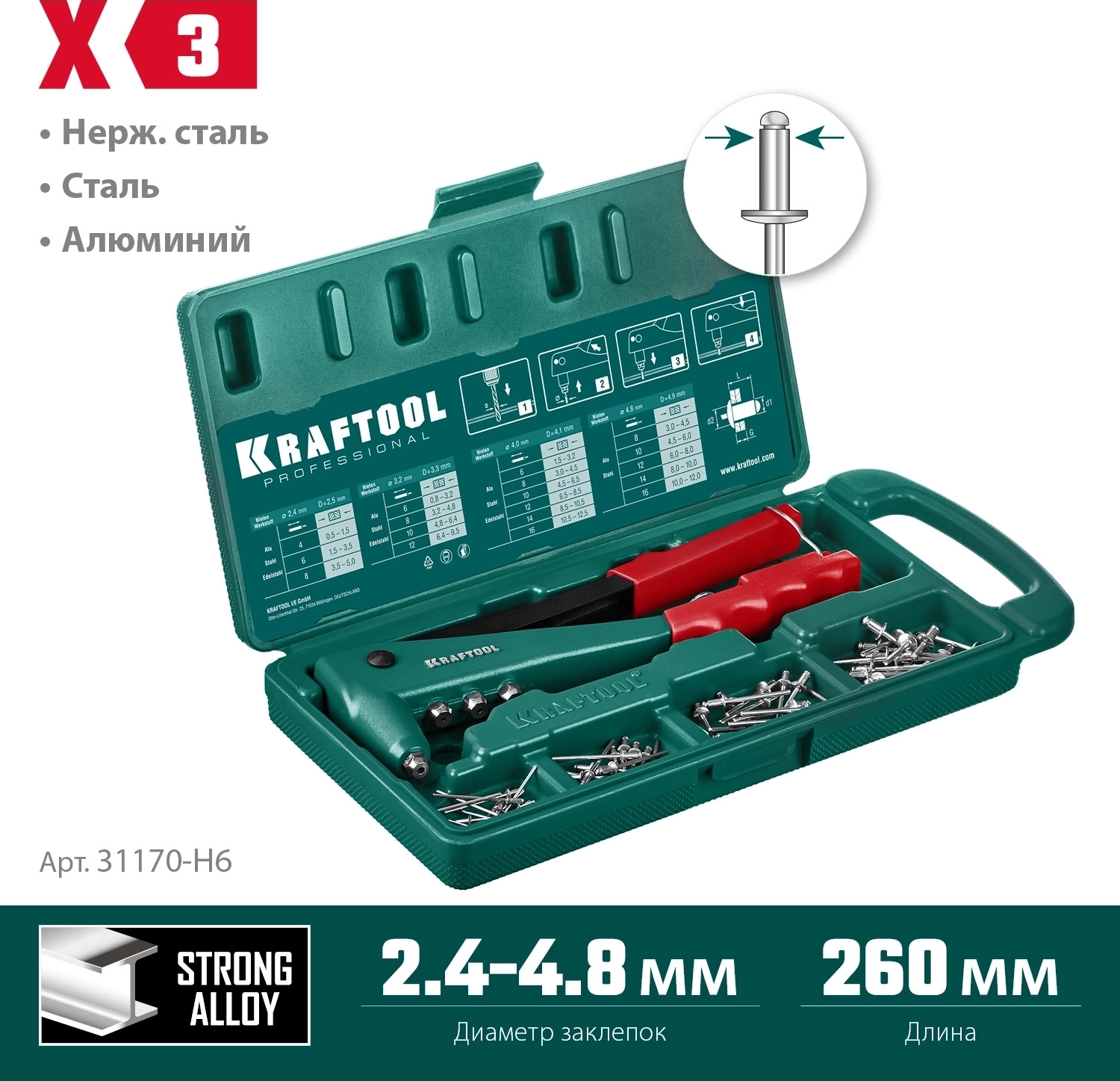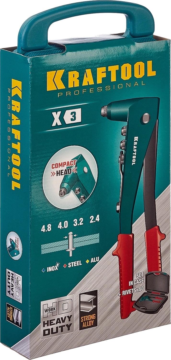 Литой заклепочник в кейсе KRAFTOOL X-3, 2.4 - 4.8 мм