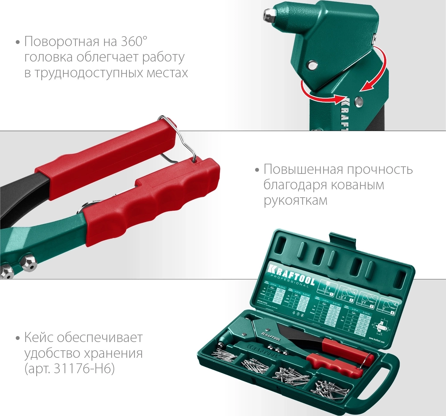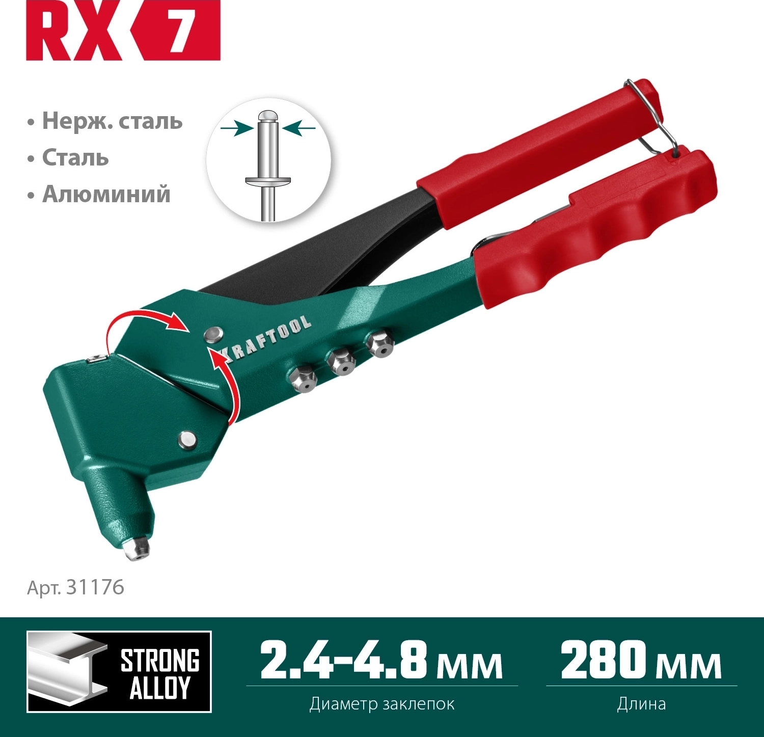 Литой поворотный заклепочник KRAFTOOL RX-7, 360°, 2.4 - 4.8 мм