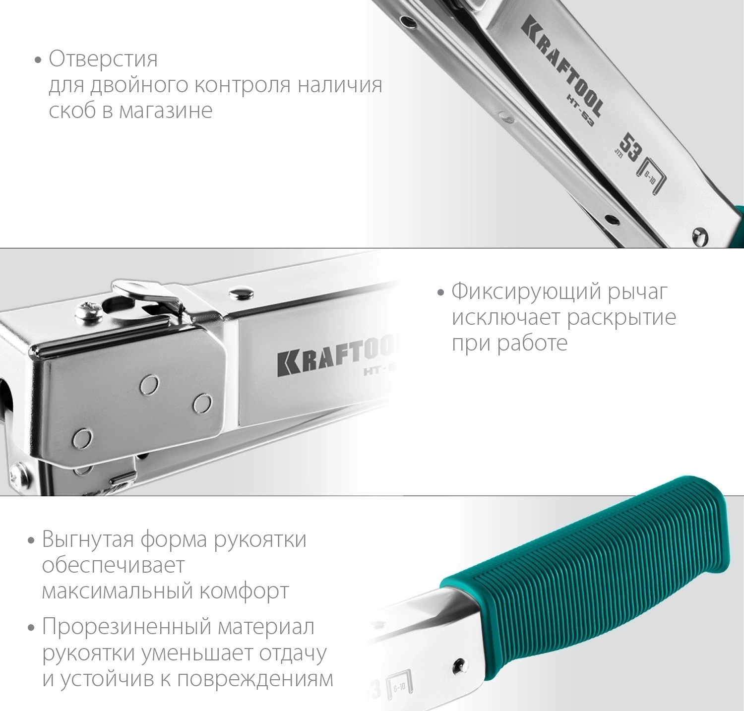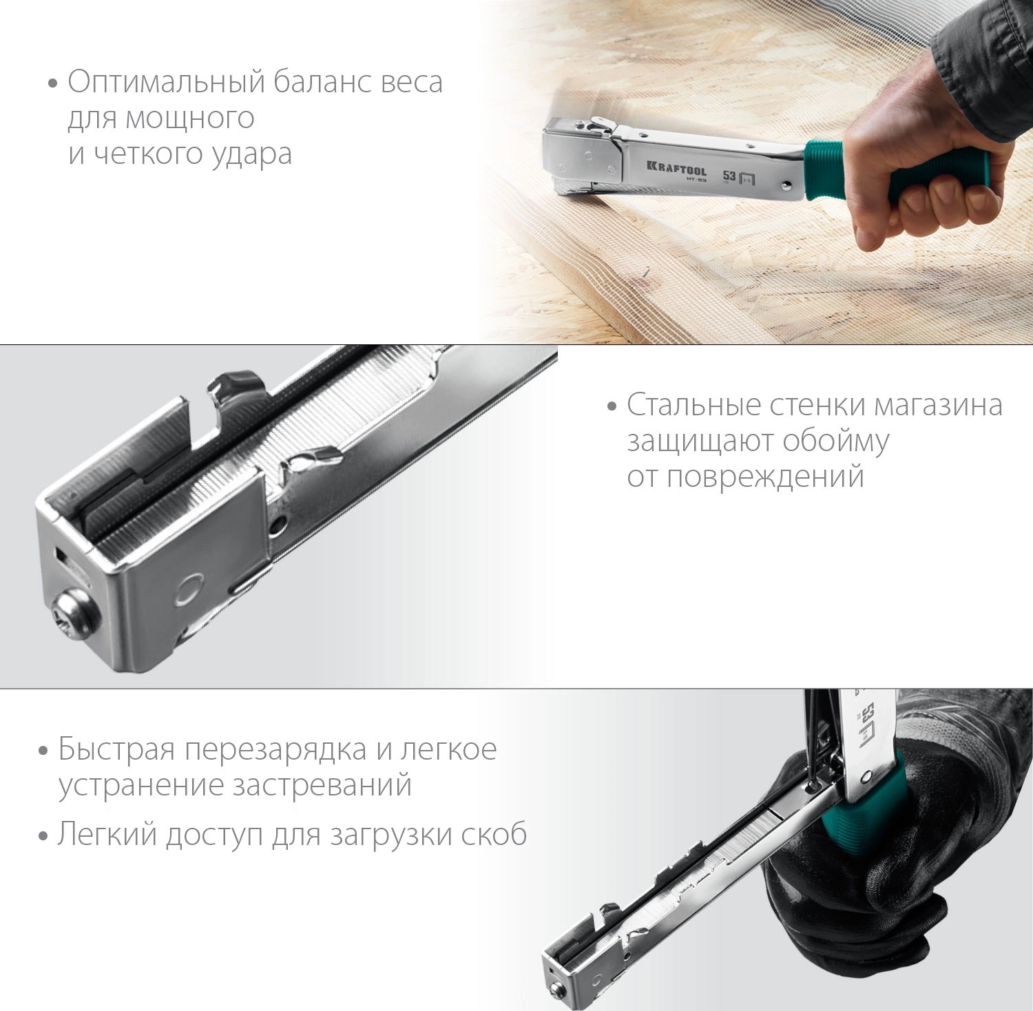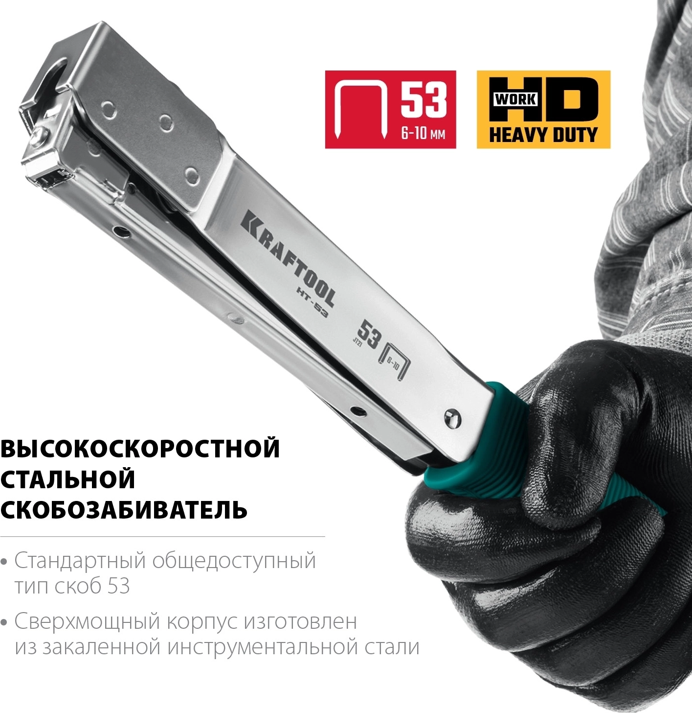 Высокоскоростной стальной скобозабиватель KRAFTOOL HAMMER TACKER, тип 53 (A/10/JT21) 23GA (6 - 10 мм)